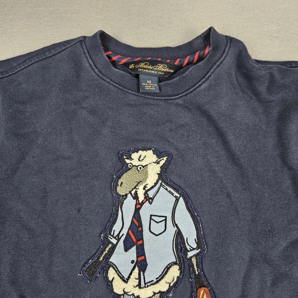 Brooks Brothers Henry The Sheep Pullover Men XS Blue Long Sleeve Big Logo Cotton