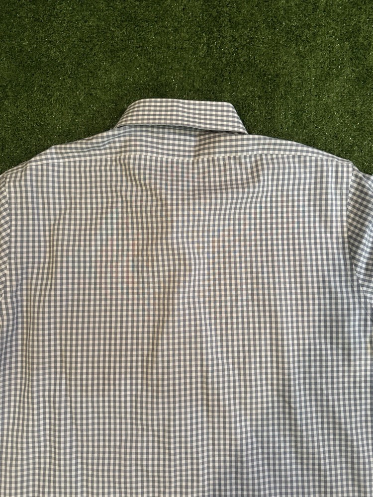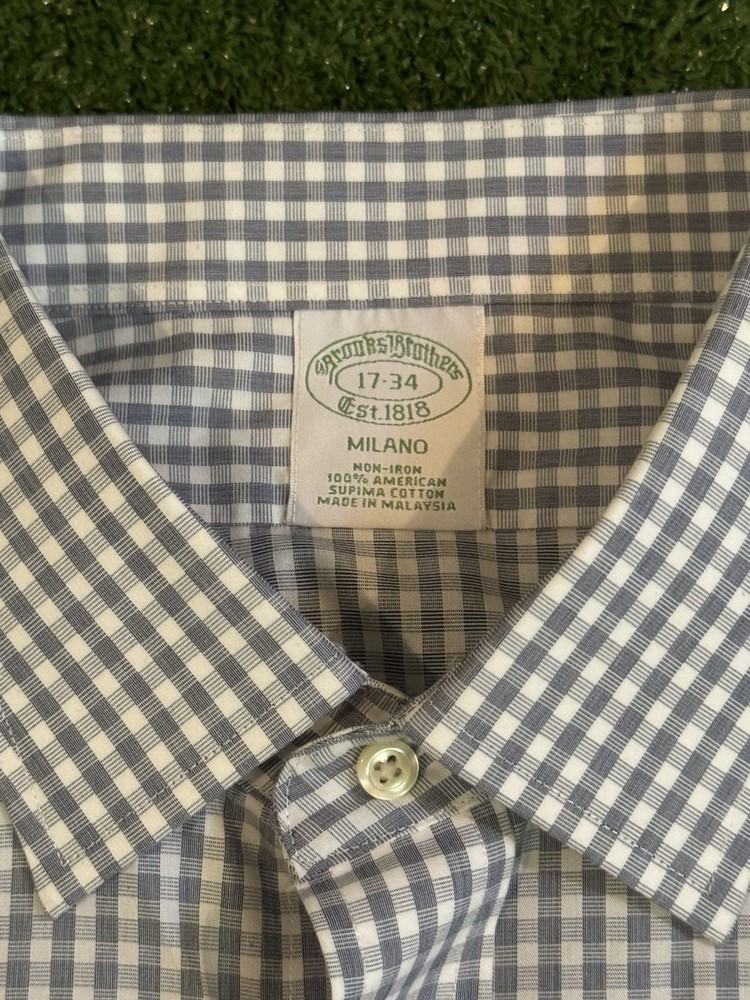 Brooks Brothers Milano Mens 17-34 Supima Cotton Plaid Dress Shirt Black White Shirt is in excellent condition no flaws worn only maybe 3-4 times