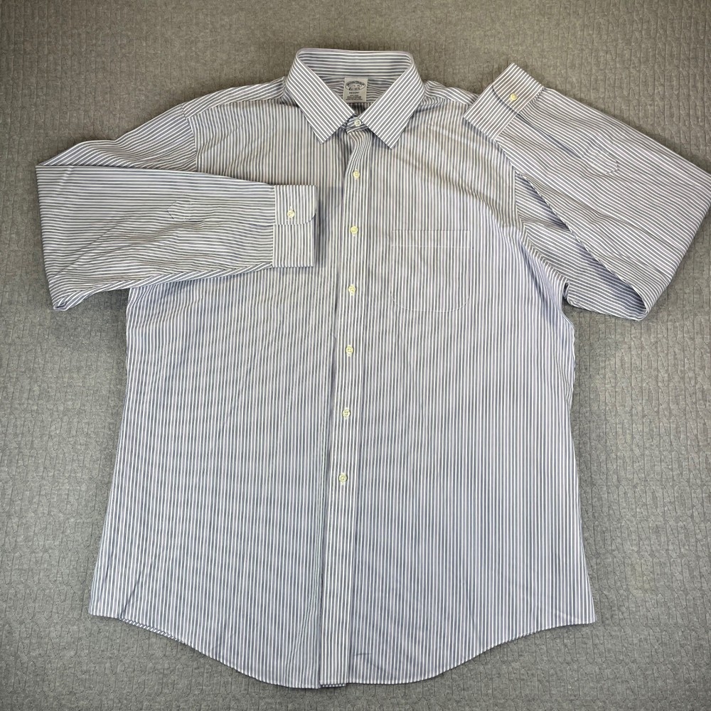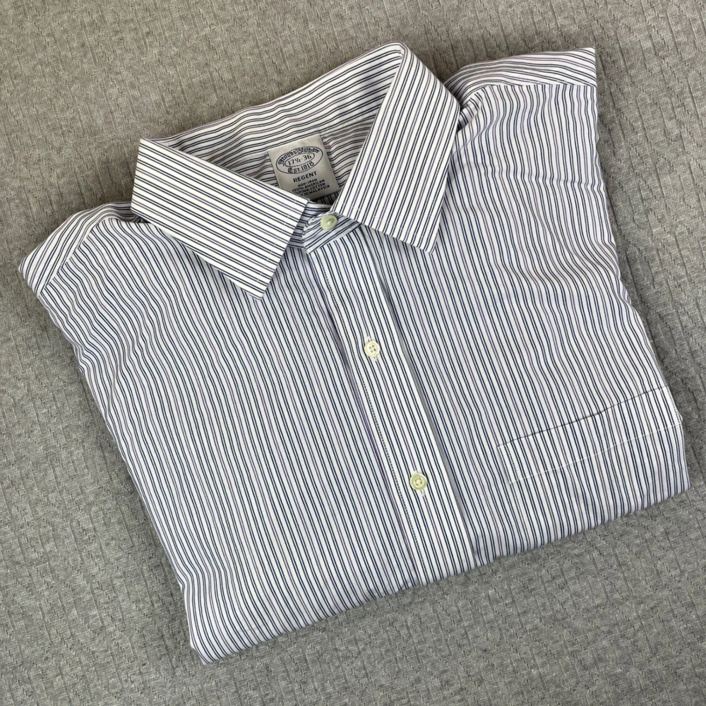 Excellent condition, please examine all photos for measurements and exact fit Department: Men Neck Size: 17.5 in Sleeve Length: Long Sleeve Pattern: Pinstripe Type: Dress Shirt Collar Style: Button-Down Material: 100% Cotton, Supima Cotton Top Cuff Style: Barrel Cuff Features: Non-Iron Neckline: Collared Keywords: Brooks Brothers dress shirt, Regent Fit shirt, Non-iron shirt, Supima Cotton shirt, Men's striped shirt, 17 1/2 neck shirt, 36 sleeve shirt, Professional shirt, Business attire, Classic menswear, Formal shirt, Button down shirt, Pinstripe shirt