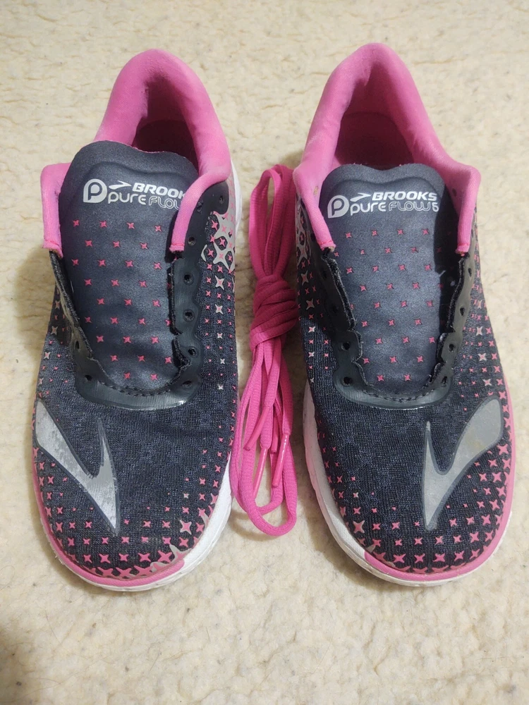 Brooks Pure Flow 5 Shoes (inv23) Black/Pink, Size 8 B Normal wear on soles. Overall in really good condition! From a smoke free home. Please note Iowa buyers have sales tax.