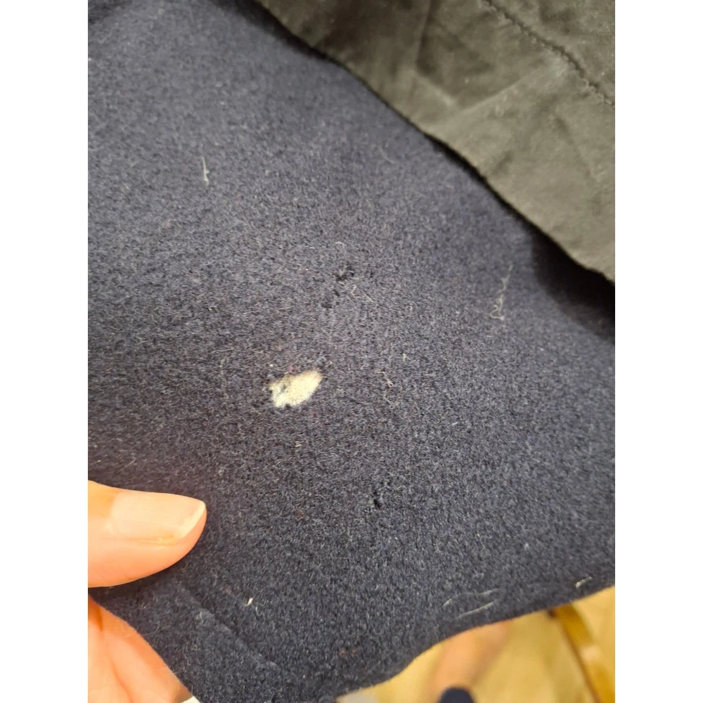 Classic and refined, this navy double-breasted coat offers timeless preppy style. Featuring structured shoulders, button-front closure, and a tailored fit, it’s designed for both warmth and sophistication. Perfect for layering over workwear or casual looks, this versatile coat is a wardrobe staple that brings polished elegance to cool-weather dressing. ** there are some small holes in the wool as pictured. One on the right lapel and one on the bottom right** shoulder to hem 34.5" sleeve length 25" Pit to pit 23.5" Classic and refined, this navy double-breasted coat offers timeless preppy style. Featuring structured shoulders, button-front closure, and a tailored fit, it’s designed for both warmth and sophistication. Perfect for layering over workwear or casual looks, this versatile coat is a wardrobe staple that brings polished elegance to cool-weather dressing.