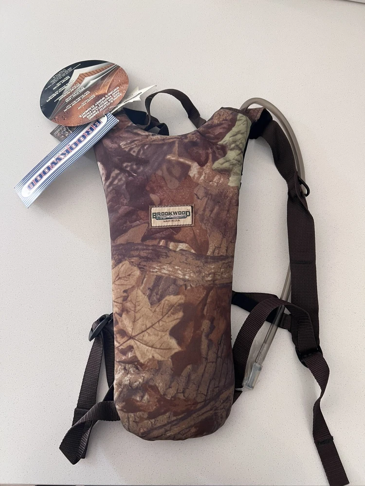 The Brookwood Outdoors 2L Hydration Backpack in Camo is a USA-made backpack designed for outdoor activities like cycling, mountain biking, running, snowsports, kayaking, multisport, and hiking. Made of durable nylon, this hydration backpack features a 2-liter capacity and is similar to Camelback products. With the Brookwood brand, model number 71000, and a camouflage color, this backpack provides a convenient and stylish way to stay hydrated during various outdoor adventures.