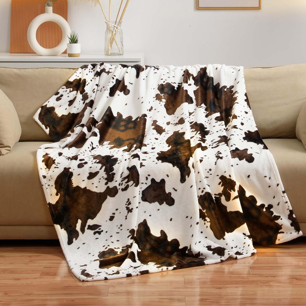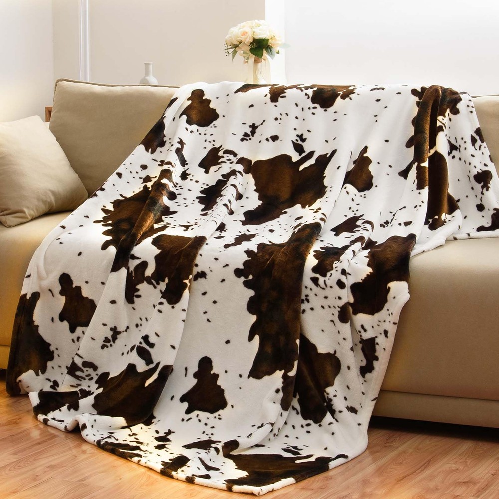 300GSM FLANNEL FLEECE - Made of 300 GSM Microfiber, which is ultra soft and warm. Lightweight and comfy Flannel throw blanket would make you all day comfortable and safe. PERFECT SIZE - This cow throw blanket measures 50x60 inch, it could cover all over your body, perfect for and teenager. Suitable for couch, sofa, chair and bed, could also be used as a pet blanket. It’s also easy to take and storage. UNIQUE DESIGN - This cow couch blanket throw would make your room modern and elegant, perfect matching with your home decor. FUNTIONAL & DECORATIVE - This classic cow blanket is Perfect for snuggling up while watching TV, reading in the living room, movie theater and park, having a lovly talk with your family. You could also use it on your bed. Also perfect for traveling, camping and picnic. EASY CARE - Machine wash separately on gentle cycle with cold water, tumble dry at low temperature - steam if needed. Do not bleach, do not iron. No shrinkage, No color fading and No unraveling after washing.