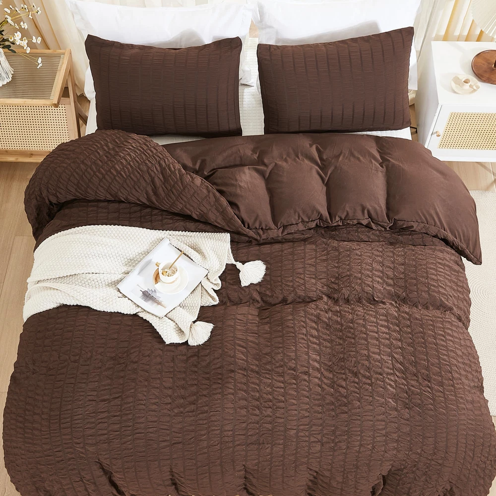 [MODERN SEERSUCKER DESIGN] Are you tired of smooth, plain duvet covers without design sense? Now our designers have been studying for a long time and designed a seersucker fabric. This fabric has a layer of wrinkled seersucker which brings a unique sense of elegance. It feels soft and wrinkled. Compared to the other same solid color products, the seemingly irregular folds are embellished with the unique individuality and artistic sense of the duvet cover, which makes it look more beautiful. [THICKER WASHED MICROFIBER] This seersucker fabric is made of high strength and thickened washed microfiber material, which is 40% more durable than ordinary materials and 20% heavier than ordinary fabrics. At the same time, this seersucker fabric will be more. breathable and more comfortable than ordinary materials. [METAL ZIPPER AND CORNER TIES] In order to save you time in changing your duvet and comforter, we have adopted a more convenient metal zipper design; at the same time, our duvet covers have corner ties in the four corners, which can better keep your duvet or comforter from slipping. [WHAT SIZES YOU CAN CHOOSE] Available in twin duvet cover: 1 duvet cover set (66"x 90")&1 pillowcases (20"x 26") ; Available in duvet cover full: 1 duvet cover set (80"x 90")&2 pillowcases (20"x 26");Available in duvet cover queen: 1 duvet cover set (90"x 90")&2 pillowcases (20"x 26"); Available in duvet cover king: 1 duvet cover set (104"x 90")&2 pillow Cases (20"x 36"); Available in duvet cover clafornia king: 1 duvet cover set (104"x 98")&2 pillow Cases (20"x 36"). [EASY CARE and PET FRIENDLY] Our seersucker duvet cover is machine washable with cold water on gentle cycle with similar colors. Please do not bleach and iron. It doesn't attract your pet hair. Holding up to dog/cat paws and dog/cat hair brushes off easily .