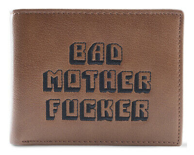 Brown Embroidered Bad Mother Fu**er Leather Wallet As Seen in Pulp Fiction Brand new hand-made leather bi-fold wallets. Wording is embroidered into the leather with black thread. Wallets come in cardboard gift boxes. Made in the USA. Free shipping worldwide and ships the same day or next day after payment is received.