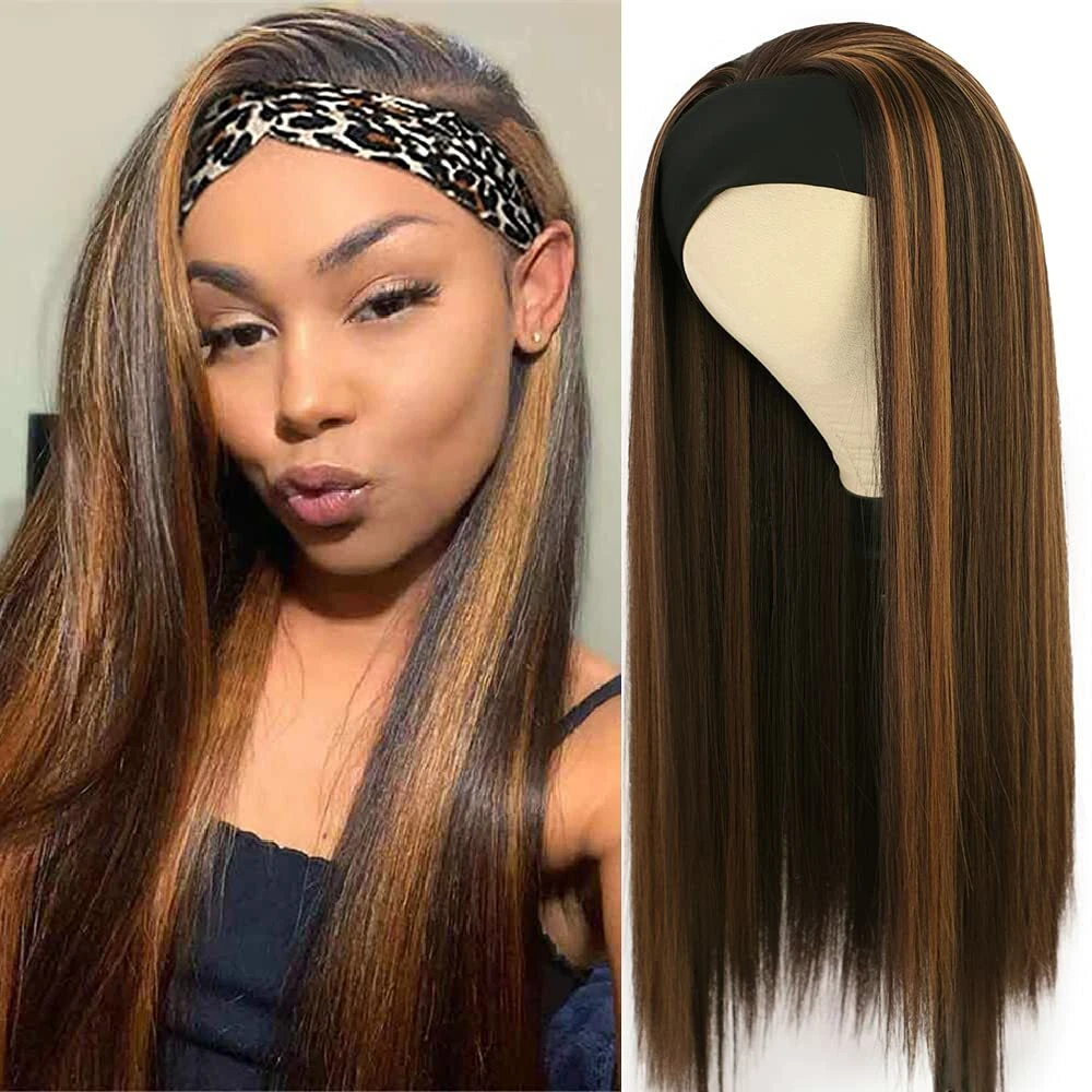 Brown Headband Wigs Long Straight Human Hair Highlight Glueless Wig No Lace Soft -Feature: 100% Brand New and High Quality! Material: High Temperature Fiber Item Type: Wig Texture: Natural Wave Product Weight: 310g Length:long You can use the blower (cold air) or hair stick (better not high temperature) to change the style yourself You can cut or trim to the styles you like. Very stylish design with natural looking and soft touch. You can wear it to parties or for daily use. The size is adjustable and no pins or tape should be required, well fits for the most. You can adjust the hooks inside the cap to the correct size for you. The item is easy to wash and care just using a dish of shampoo in cold or lukewarm water. Note : 1:Due to the different between different monitors ,the picture may not reflect the actual color of the item ,thank you ! 2:Please allow 2-4 cm different due to manual measurement ,thanks (all measurement in cm and please note 1cm= 0.39inch) Package include: 1 x Wig Payment Terms of sales Contact us Payment We accept PayPal only. We ship to your PayPal address. Please make sure your eBay address is the same as your PayPal address before you pay. Terms of sales All the destination country local tax is the buyer responsibility. All the items will a "GIFT" description and a Low value for faster custom process. We suggest all buyers to insure their items. Contact us We hope our buyers left positive feedback when receive the package and be pleased with them, we will also left positive feedback to all of our kind buyers.If you are unpleased with it, Please contact us firstly we will find a solution to meet your requirement and enhance the satisfaction. ENJOY YOUR BIDDING NOW!