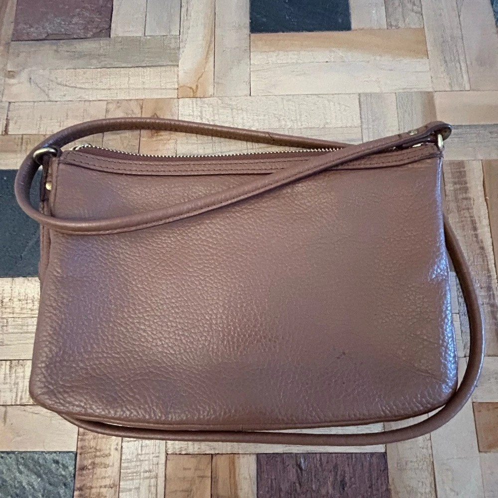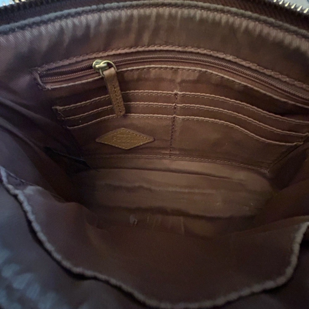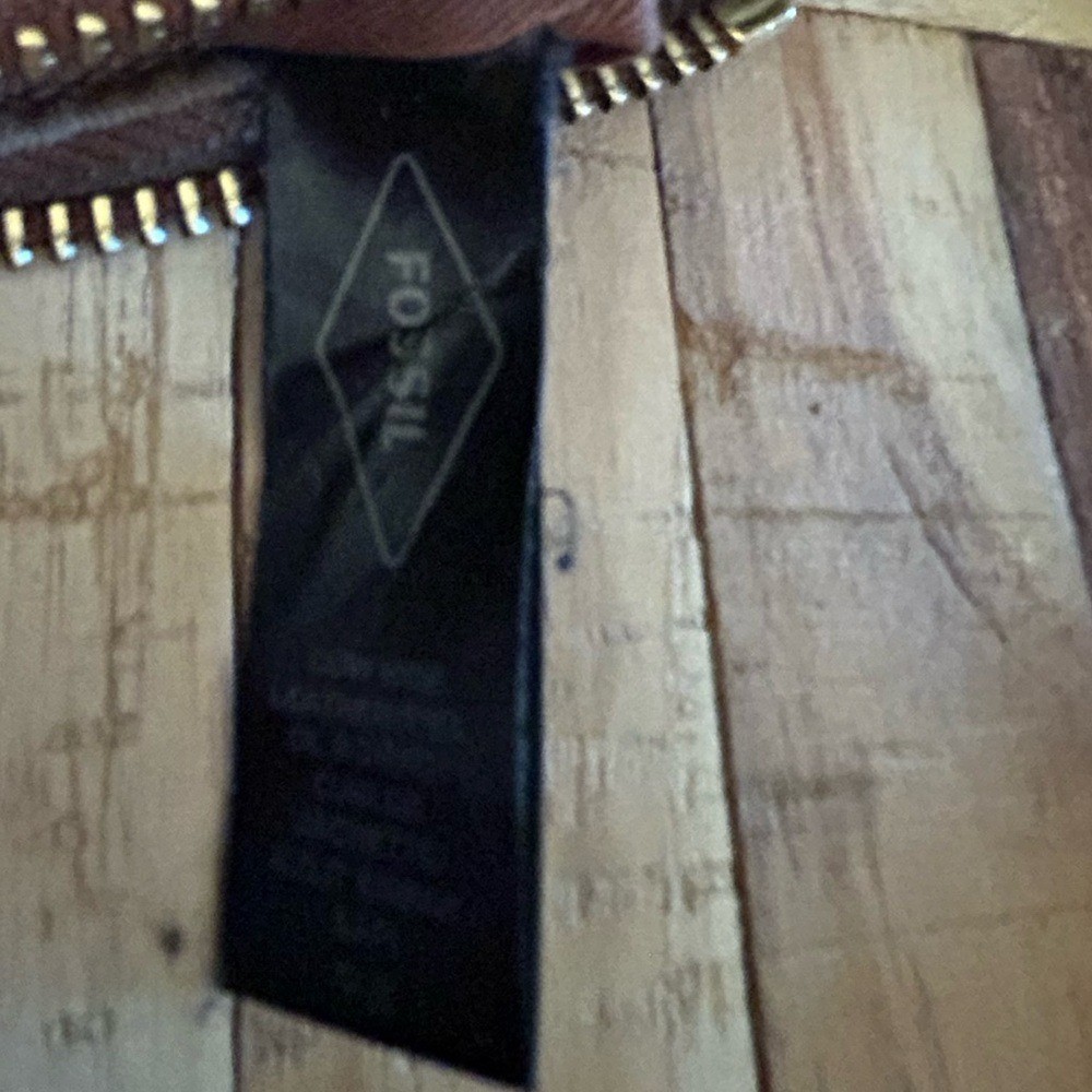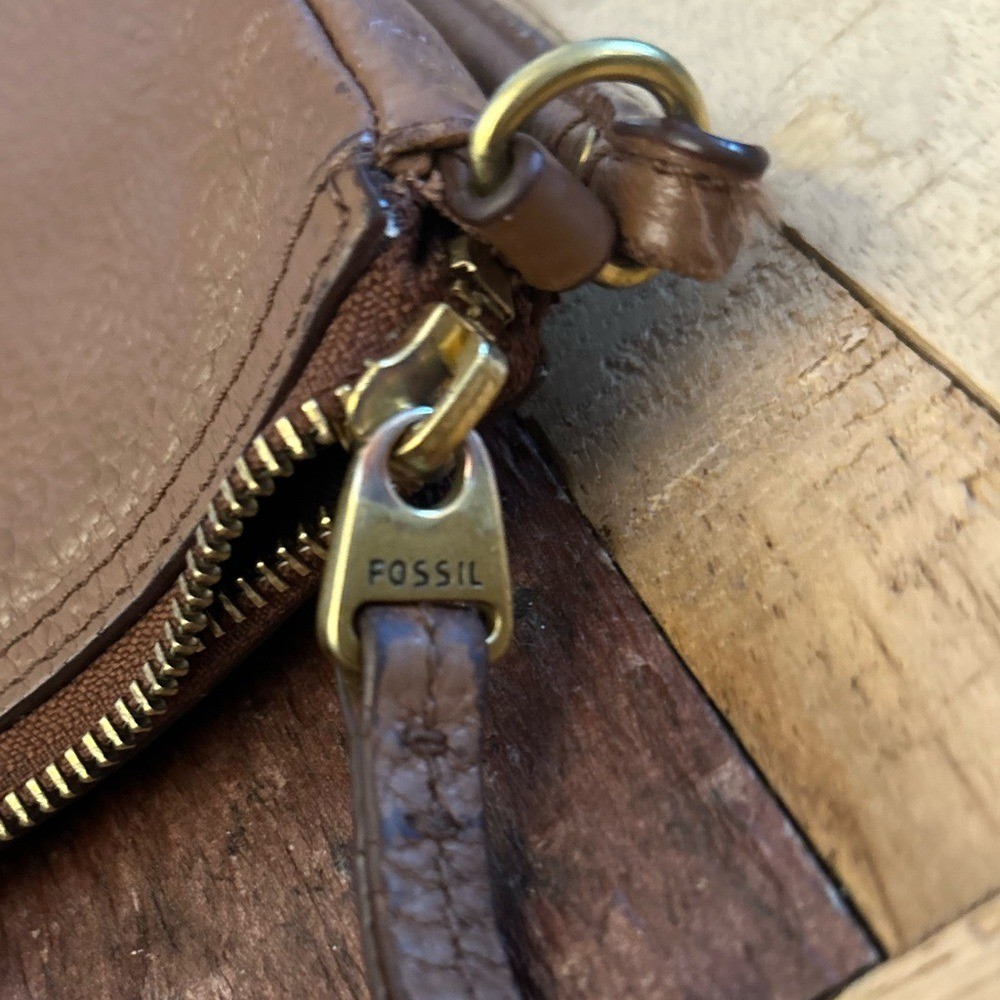 brown leather Fossil crossbody purse. Organizer design and adjustable strap casual, boho, and streetwear