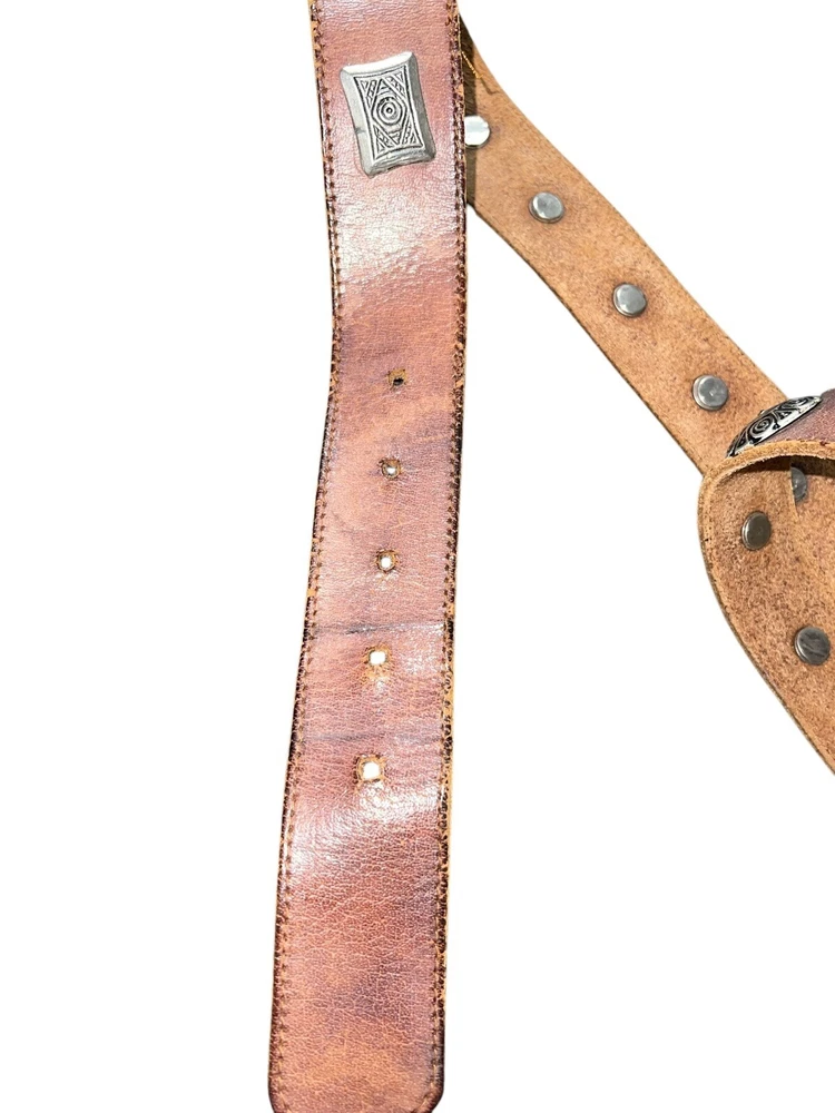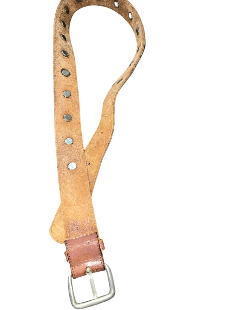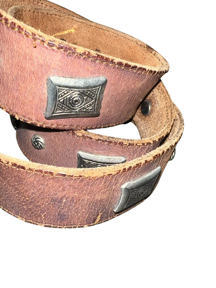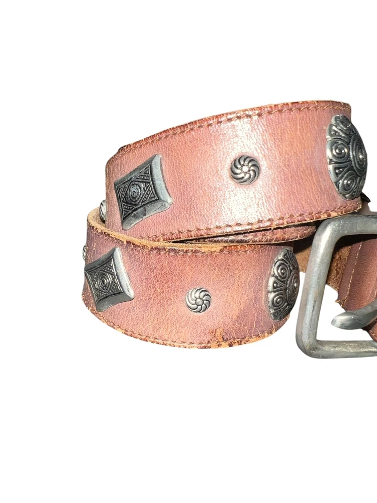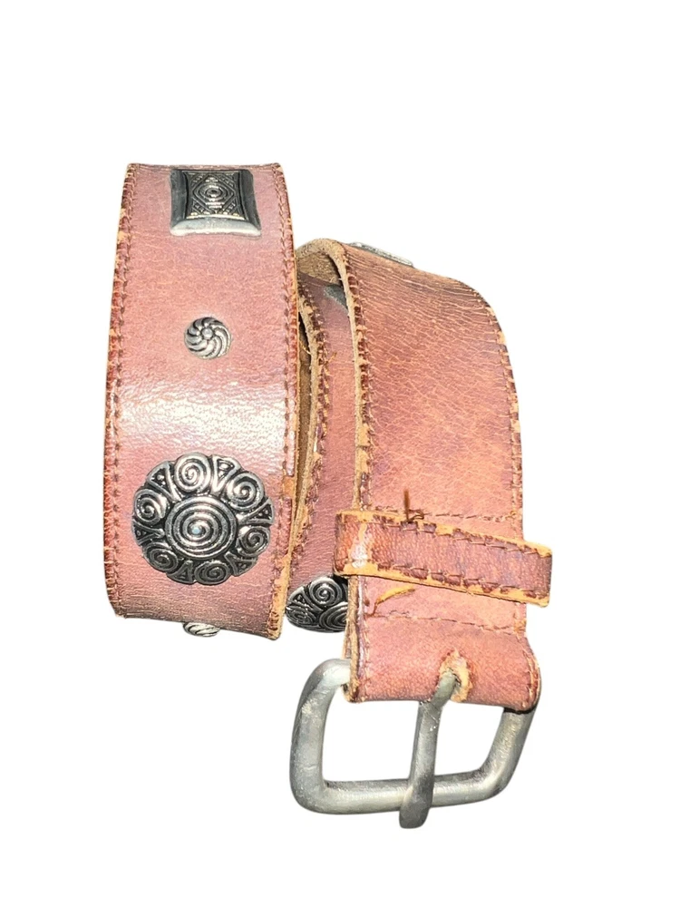 Brown Leather Silver Studded Conch Belt Size Medium