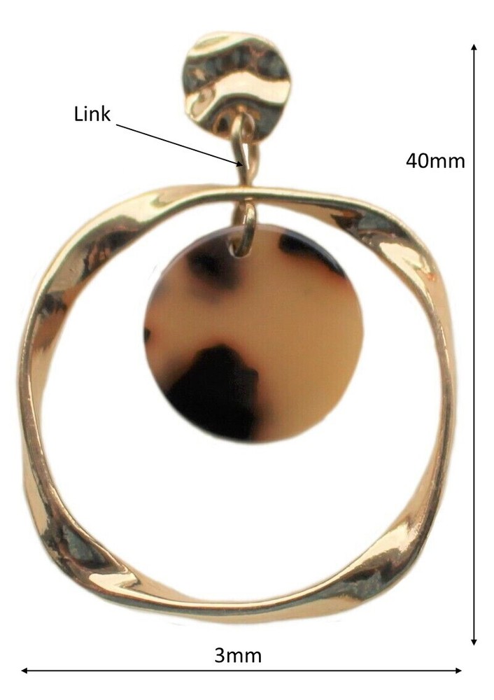 Drop Pendant Earrings Hammered Stud Drop Earrings Flat Round Pendant Twisted Metal Frame Gold Tone Brown Marbled Pendant* * Pattern May Differ from Photo 30mm Width 40mm Drop Combined Weight : 5g Lightweight Link Provides Movement Stud Butterfly Fastening 60% Zinc, 40% Acetate Condition : New without Tags Sterilising Before Wear is Recommended NOT Suitable for Children Under the Age of 3 See Photographs For Measurements Please Measure Carefully to Avoid Disappointment Zinc : A metallic, chemical element Acetate : A Cellulosic material commonly made from wood but the raw material could also consist of other cellulosic material