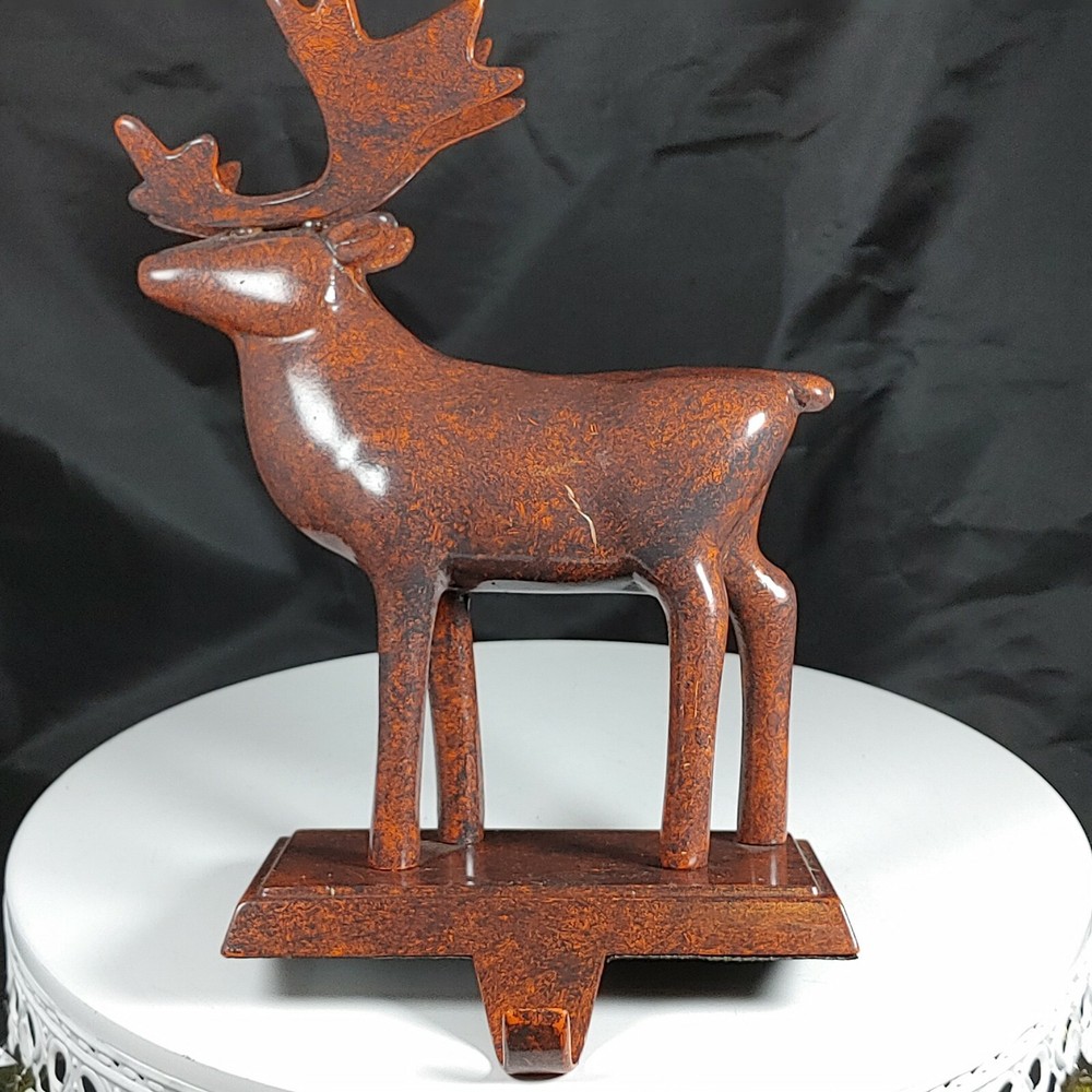 Elk Christmas Stocking Holder for Mantle Brown Metal Holiday Ornamental Size 8-3/4" high x 6" long Excellent condition Ships FAST from Canada with Tracking Thanks for shopping our store! Please Follow Our Store for Updated Weekly Items Happy Holidays! We ship UPS, Canada Post and Fedex as postage requires. Thank you for being a valued customer!