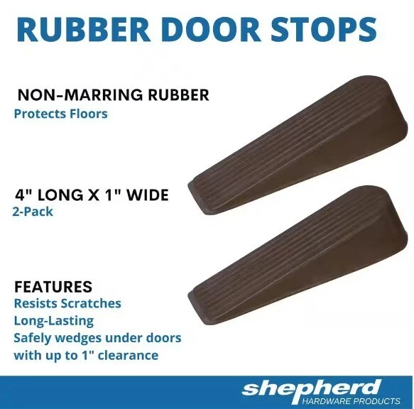 Add a touch of sophistication to your doors with these brown rubber door stops. The pack includes two per pack, with each measuring 1 inch in width and 4 inches in depth. These door stops are perfect for those who want to add a stylish touch to their home décor. Made of high-quality rubber, these door stops are durable and long-lasting. The brown color and finish family add a warm and inviting feel to any door. These door stops are perfect for use on internal or external doors and are easy to install. Get your hands on these branded door stops today and add a touch of elegance to your home.