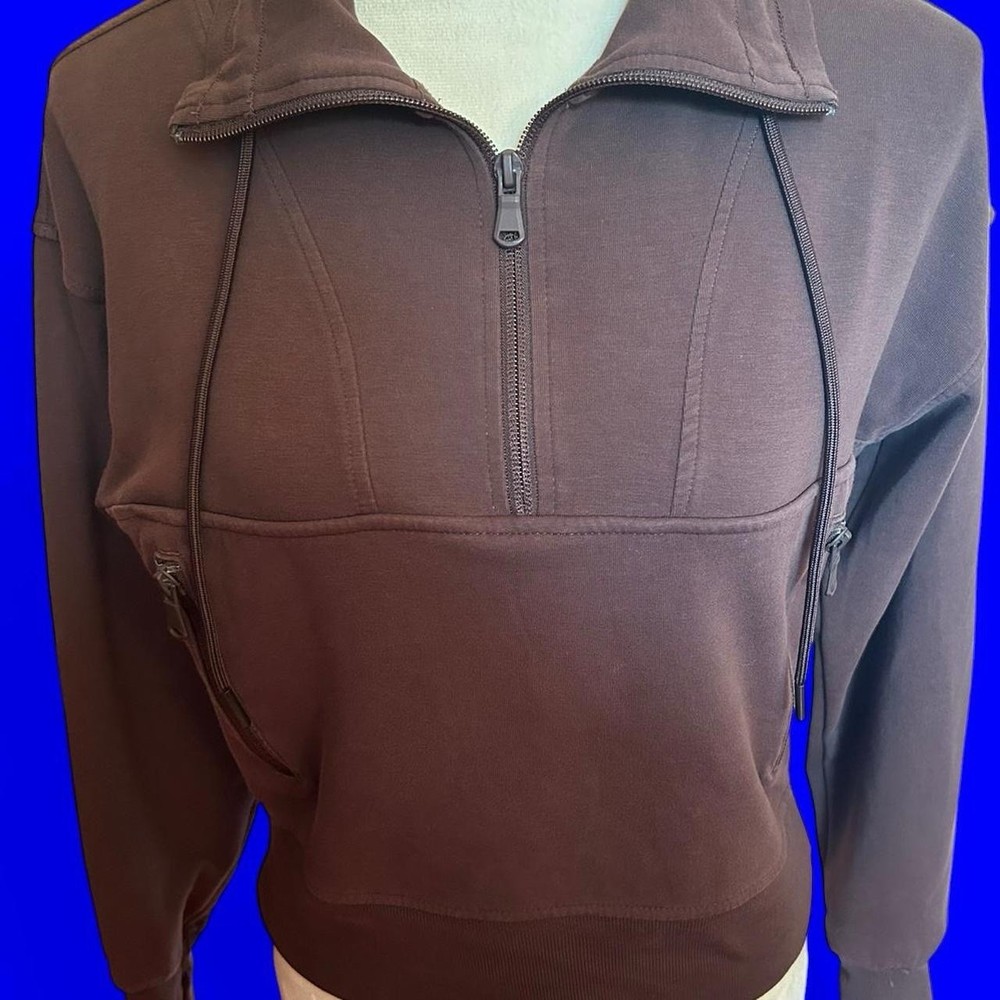 Brown Old Navy Active Dynamic quarter zip fleece #activewear #athleisure #workout #sportswear #streetwear chestnut brown, fleece sweatshirt, quarter zip, cozy, sporty, casual wear, athleisure, active lifestyle, warm fabric