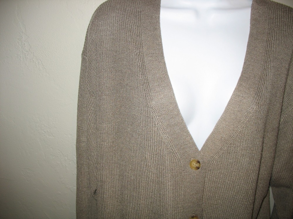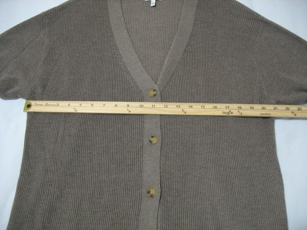Brand/Item: Ella Moss/Cardigan Sweater Size: XL Description: Brown, v-neck, long sleeve, button front Condition: No stains, no holes and minimal wash wear Tape measure not included.