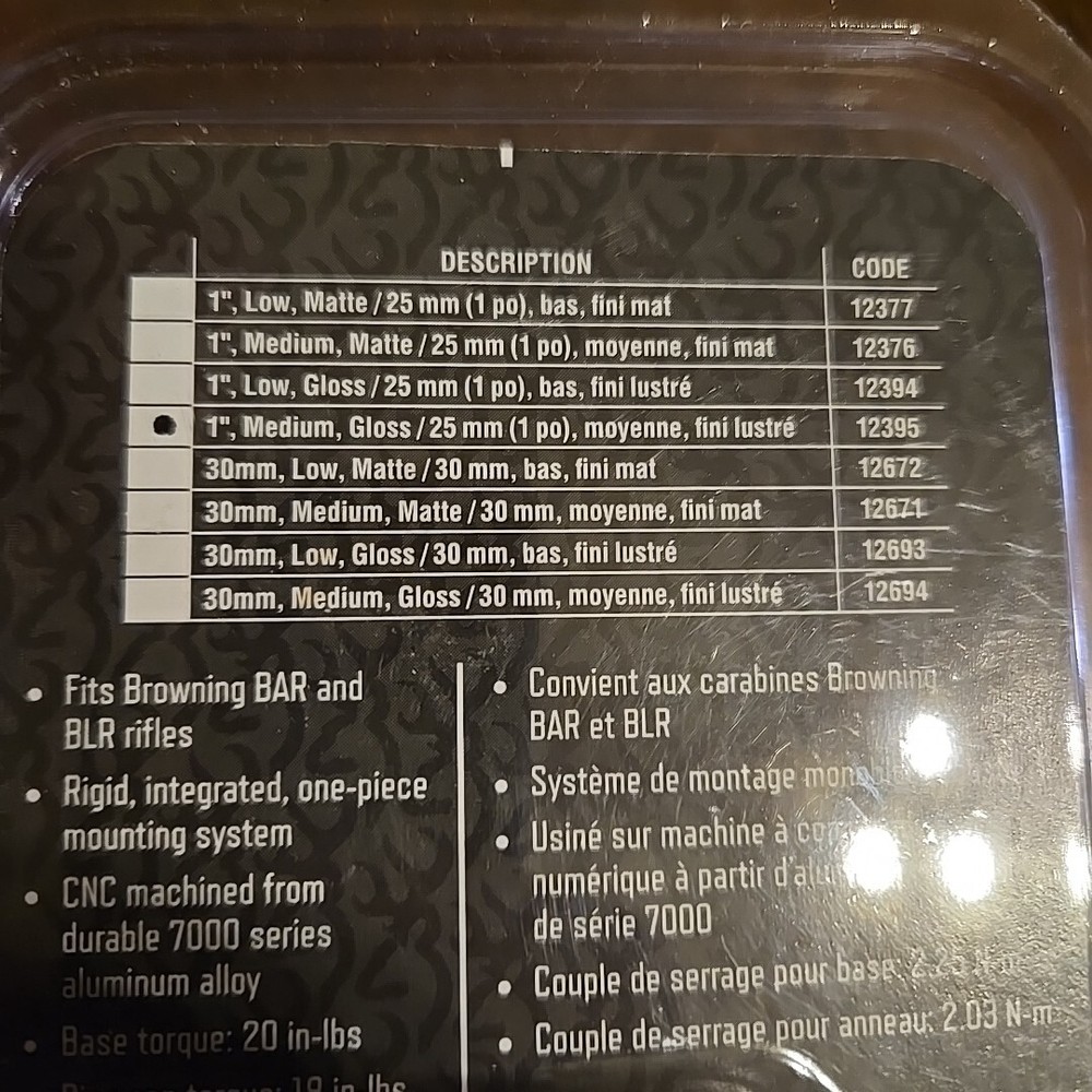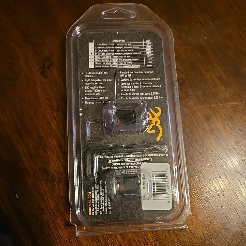 For Gun Type: Rifle Color: Black Type: Scope Rings Brand: Browning MPN: 12395 Model: BAR/BLR Base Tube Diameter: 1 in Ring Height: Medium UPC: 023614201526 For Gun Make: Browning gtin13: 023614201526 Mounting: Integral Custom Bundle: No Modified Item: No