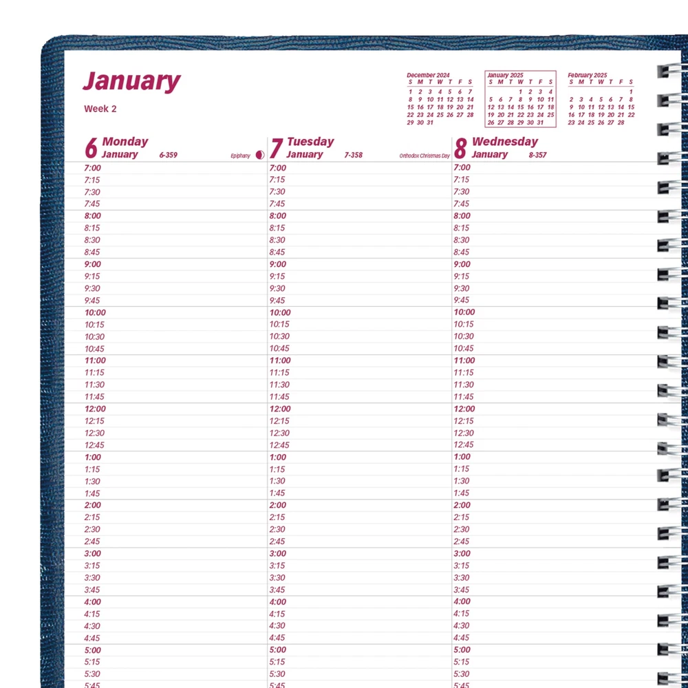 Brownline® 2025 Essential Weekly Planner, Appointment Book, 12 Months, January to December, Twin-Wire Binding, 11" x 8.5", Blue (CB950.BLU-25) The Brownline® Essential Weekly Planner and Appointment Book features 12 months of planning, spanning January 2025 to December 2025, with one week per two-page spread in an appointment schedule format. The lizard-like soft cover is constructed with flexible twin-wire binding for a flat and sturdy writing surface. Weekday appointment schedule from 7:00 a.m. to 8:45 p.m. in 15-minute intervals, Saturday appointment schedule from 7:00 a.m. to 5:45 p.m. in 15-minute intervals, and ruled space for Sunday. Contains numbered weeks, reference calendars of past, current and following four (4) months on each spread, countdown of days passed and days to come (Julian dates), and highlights holidays and phases of the moon. Tear-off corners to help keep place. Extra bonus pages include: three-year calendar, 2025 and 2026 quarterly planners, interest table, metric conversion charts, and dedicated sections for contacts (telephone/address/email) and notes. English. Blue cover with gold date detail, size: 11" x 8.5". Eco-conscious planner crafted from 50% post-consumer recycled fiber paper materials. Certified under FSC® license code: FSC® C102682. The Forest Stewardship Council® enables businesses and consumers to choose products made with materials sourced from responsible forestry, promoting environmentally appropriate, socially beneficial, and economically viable management of the world's forests. Made in Canada. The Brownline® Essential Planner is the product of choice when it comes to selection and affordability. Used in the home, office or classroom the Brownline® Essential Planner meets every possible need and represents a great value. Brownline® Dated Products are produced using acid-free paper to prevent color-change over time and vegetable oil-based inks to help protect the environment. Brownline® Since 1846. (CB950.BLU) Essential Weekly Appointment Book and Planner spanning 12 months, January to December 2025. Week-on-two-pages format and weekday appointment schedule layout from 7:00 a.m. to 8:45 p.m. in 15-minute intervals. Saturday appointment schedule from 7:00 a.m. to 5:45 p.m. in 15-minute intervals and ruled space for Sunday (Monday-Sunday). English. Flexible twin-wire binding with lizard-like, soft cover construction in Blue allows planner to fold back for a flat and sturdy writing surface. Blue cover with gold date detail, size: 11" x 8.5". Stay Organized in 2025 Quality you can Count On Shipping from the USA All of our products are shipped from the USA, ensuring quick delivery to your destination. Payment We offer the following payment methods: PayPal, credit card, bank transfer, and eBay's secure payment system. Free Shipping & Free Returns Shipping within the USA is FREE. Additionally, any return is absolutely free for you. Risk-Free Purchase You have the option to return an item within 30 days without any justification. We cover the return shipping costs! Fast Shipping We ship immediately upon receipt of payment. Generally, the package is delivered within 2-3 days in the USA. If it takes longer, we will contact you. Quality and Costs Made in Europe, USA, China No customs fees or additional charges Total satisfaction guarantee Invoice with declared VAT available upon request in .pdf format Feedback Your feedback is very important to us. After you pay for your purchase, you will automatically receive positive feedback from us.