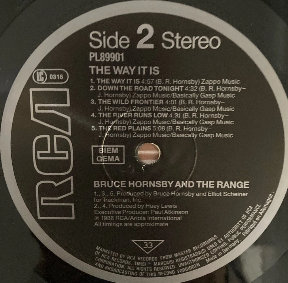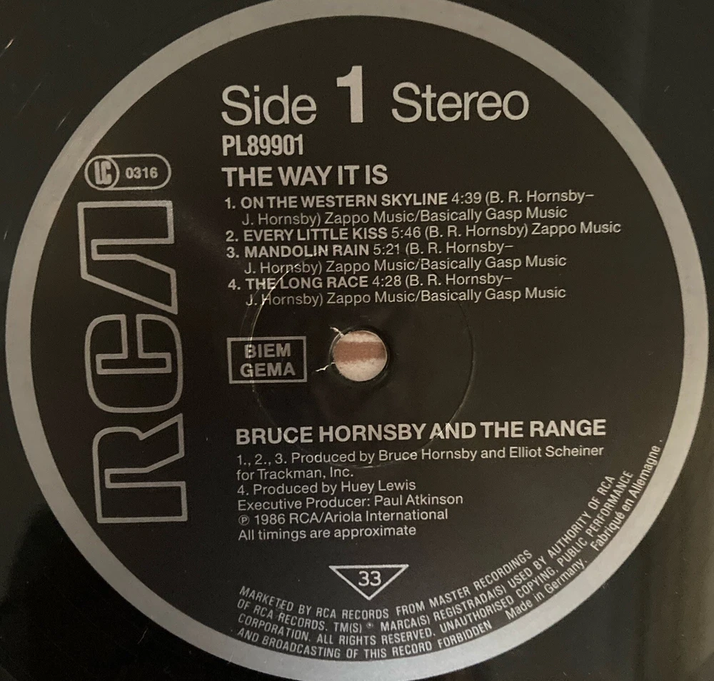 Bruce Hornsby and the Range ‘The Way It Is’ vinyl album, 1986 RCA - made in Germany. Some scratch marks but play checked and plays fine; inner sleeve in very good condition; outer sleeve has just light wear round edges.