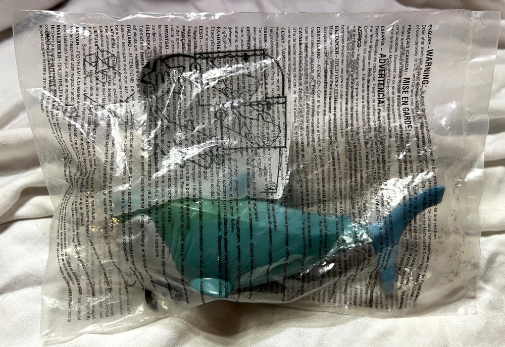 HEY YOU GUYS!!! from McDonald’s 2003 promotion for Disney Pixar’s FINDING NEMO movie it’s a New In Original Package (NIOP) BRUCE the Great White Shark Happy Meal toy. This vintage hard plastic collectable is great for appreciating, being nostalgic, collecting, displaying, investing in, playing with and can even be used as a 🎂 Cake Topper, Decoration or Ornament. It is still in the ORIGINAL UNOPENED PLASTIC BAG. (Better buy him quick before he suffocates in there!) 😆 It is 1 of an 8 toy set. ***Please note: The original unopened 22 year old packaging and toy show some signs of wear; Please review the photos carefully for condition before purchasing. *** ***Also note: Due to the length of time this item has been sealed in it’s original unopened plastic bag, I CAN NOT guarantee any included batteries will still be operational*** e b a y may add state sales tax to your final total depending on your location. Orders are sent well padded, tracked & delivery confirmed via USPS shipping & handling. Combined item $ hipping is your best value and $ave$ money on multiple item purchases! Most 2 nd items or more can be added for only an additional .35 or .50 cents each. To take full advantage of combined / discounted shipping for multiple item purchases, please add each item to your shopping cart before checking out. Click here to see all the Toys, Comics, Cards & other cool vintage stuff in my thomaszr e b a y store. Can’t find what you are looking for? Send me a message and if I have it I will list it for you. Thanks for l 👀 king; ENJOY! 😁