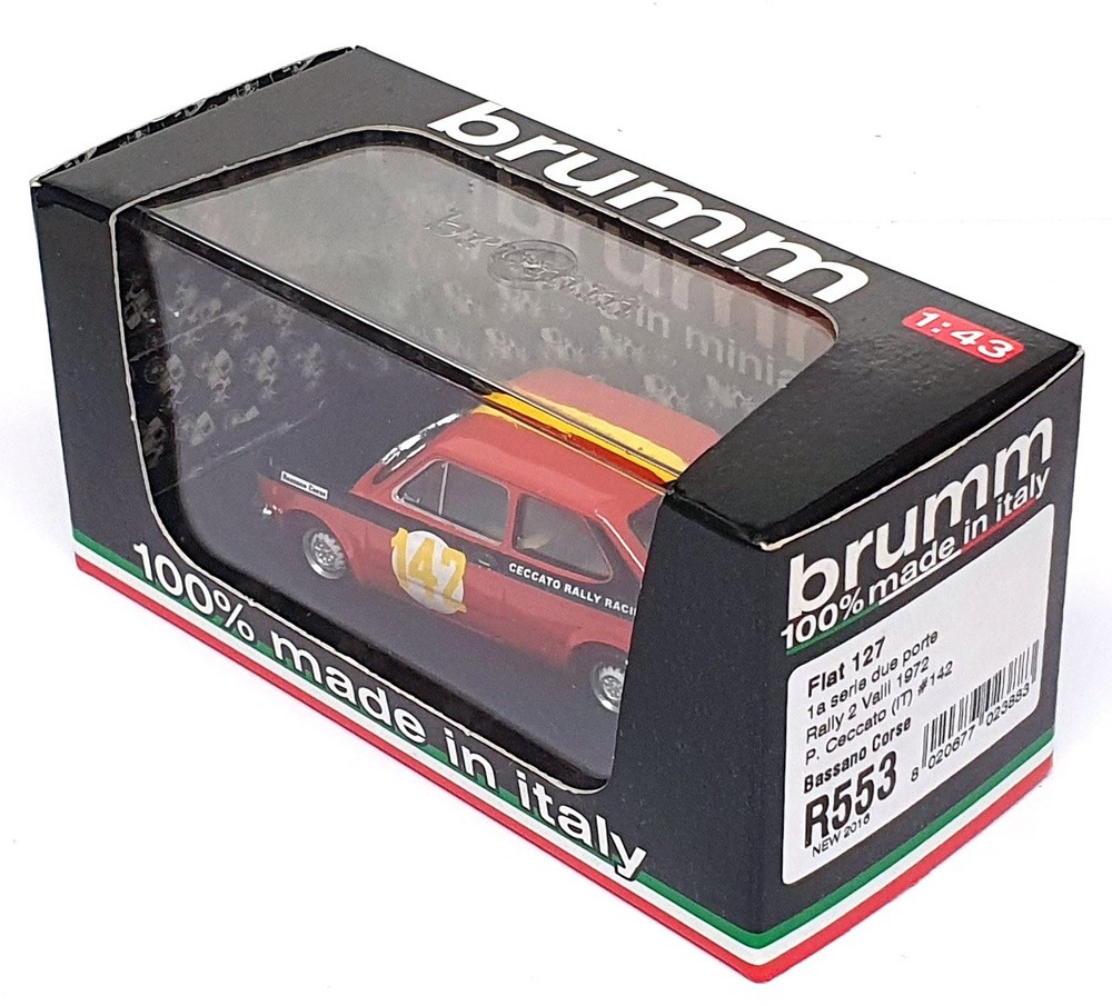 Brumm 1/43 Scale R553 - Fiat 127 2-Dr. Bassano Corse #142 Rally 2 Valli 1972 Contact Us Home About Us Feedback Contact Us Add to favourites Brumm 1/43 Scale R553 - Fiat 127 2-Dr. Bassano Corse #142 Rally 2 Valli 1972 click thumbnails above to enlarge Shop Home Our Feedback Ask a Question Product Description 1/43 Scale Diecast Model by Brumm The MODEL is in EXCELLENT condition - previously displayed. The BOX is in EXCELLENT condition - slightly worn. SEE IMAGES FOR BEST DESCRIPTION AND GRADING CONDITIONS. Product Details Scale 1/43 Material Diecast Brand Brumm EAN 7427317941681 Additional Info GRADING CONDITIONS MINT - The item is in perfect condition. NEAR MINT - Almost perfect, any imperfections will be extremely minor. EXCELLENT - The item will have had very careful use, with only small imperfections. GOOD - The item will have had more use, showing obvious imperfections. FAIR - The item will have heavy signs of wear, showing major imperfections. SPARES or REPAIR - The item will be in a poor condition. Payment Shipping Returns About Us Methods of Payment Our preferred method of payment is Paypal. Any questions please ask! Thanks. WORLDWIDE MAIL-ORDER SPECIALISTS Shipping within the UK is FREE OF CHARGE - Plese see the eBay postage tab for other worldwide shipping charges. We ship from our warehouse is the UK. We ship worldwide everyday using a Tracked / Signed For service. Over 30 years of experience shipping collectible models worldwide - you can trust our service. Any questions, please ask. Thanks for looking ! Returns We hope you are completely satisfied with your purchase. In the unlikely event that there is a problem / fault with the item we will happily provide you with a refund (excluding returns postage). About Us R.M.Toys Ltd is a family led company with over 50 years worth of experience specialising in high quality collectable models & worldwide delivery. We have continued to expand and develop as the retail market and technology has evolved and we are in no doubt we will need to continue with that trend so we hope we have been able to showcase our service and provide you, our customer, with everything you have required. Our aim is to ensure no matter what the model, we will provide an excellent service experience. To us, this means great availability, excellent customer service as well as quick & secure delivery, to anywhere across the world. All that is left to say is Thank You for taking the time to read our page and using our company to assist with your collection and gift needs - every order placed is gratefully received and as important to us as the next. Kind Regards The RM Toys Team R.M.Toys Ltd - All Rights Reserved || Design by Tapika Store The MODEL is in EXCELLENT condition - previously displayed. The BOX is in EXCELLENT condition - slightly worn. SEE IMAGES FOR BEST DESCRIPTION AND GRADING CONDITIONS.