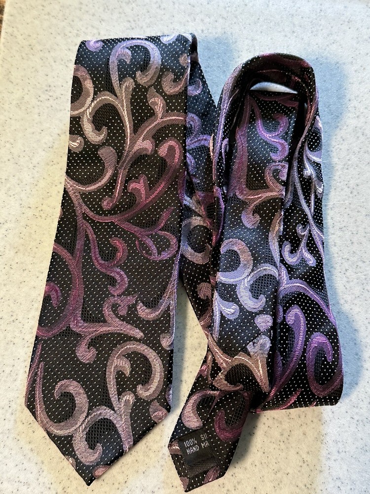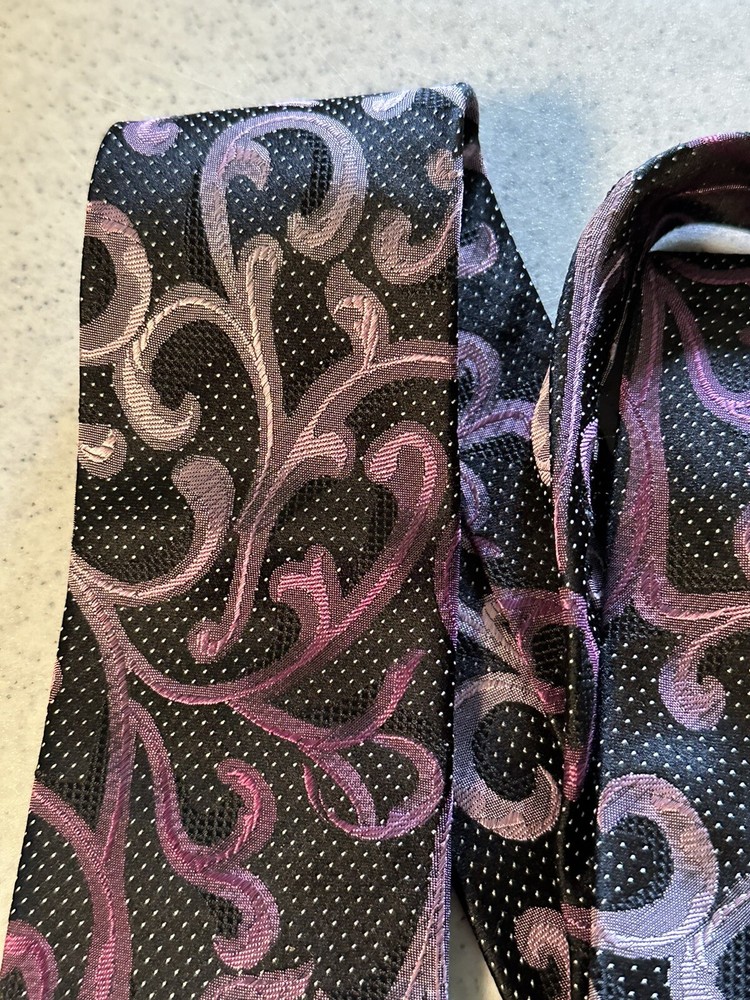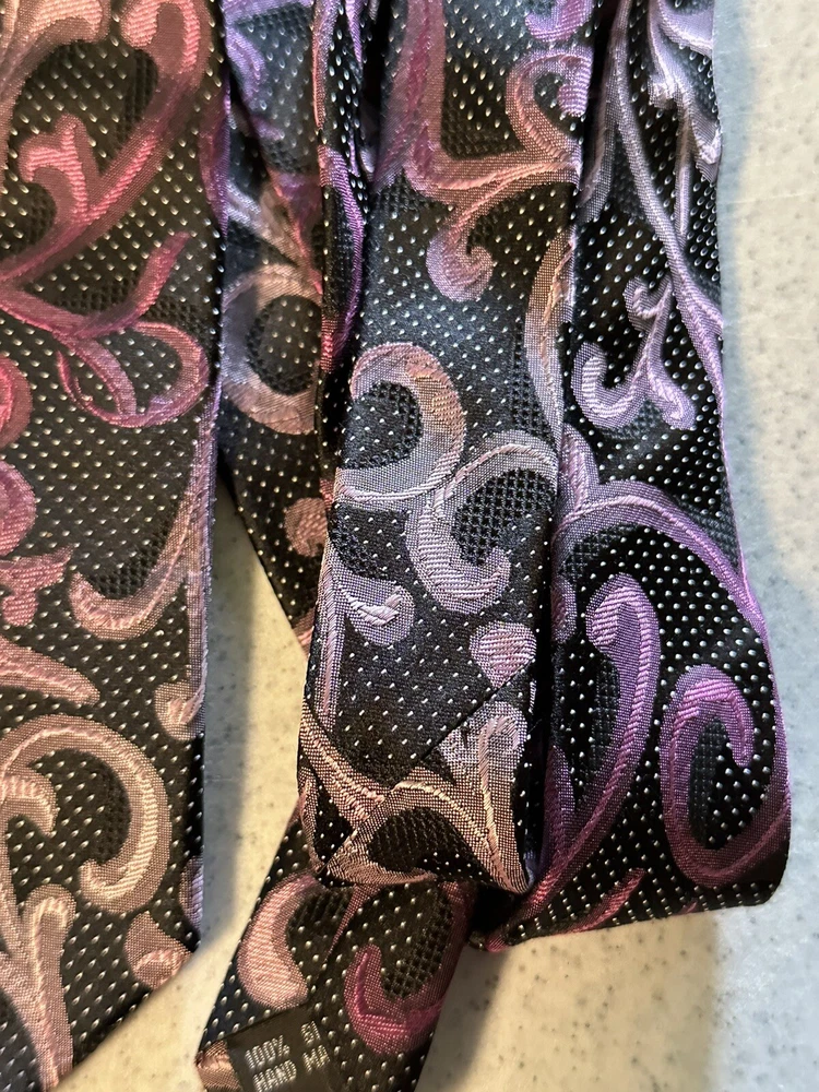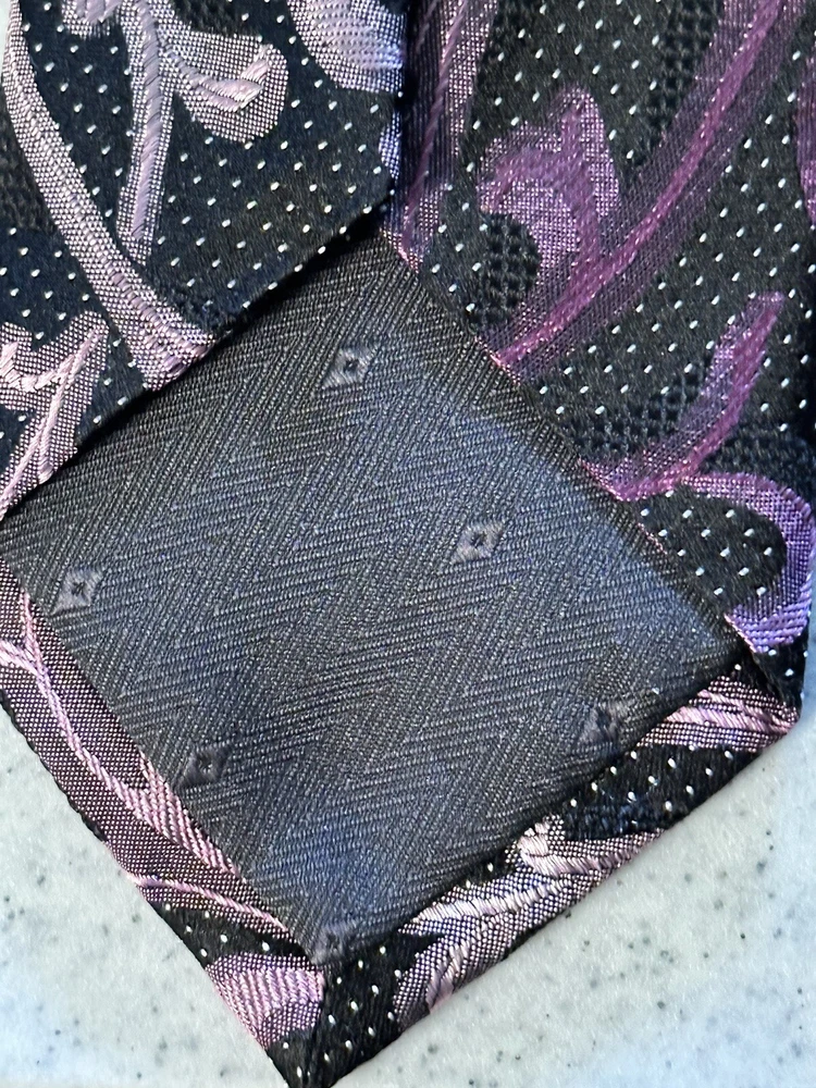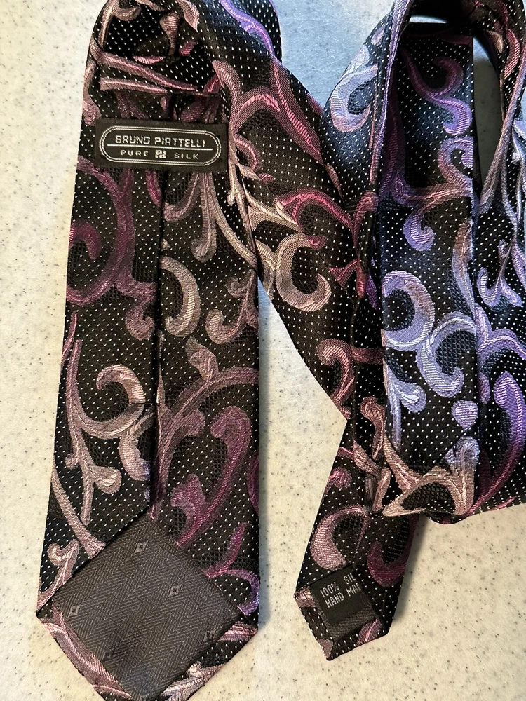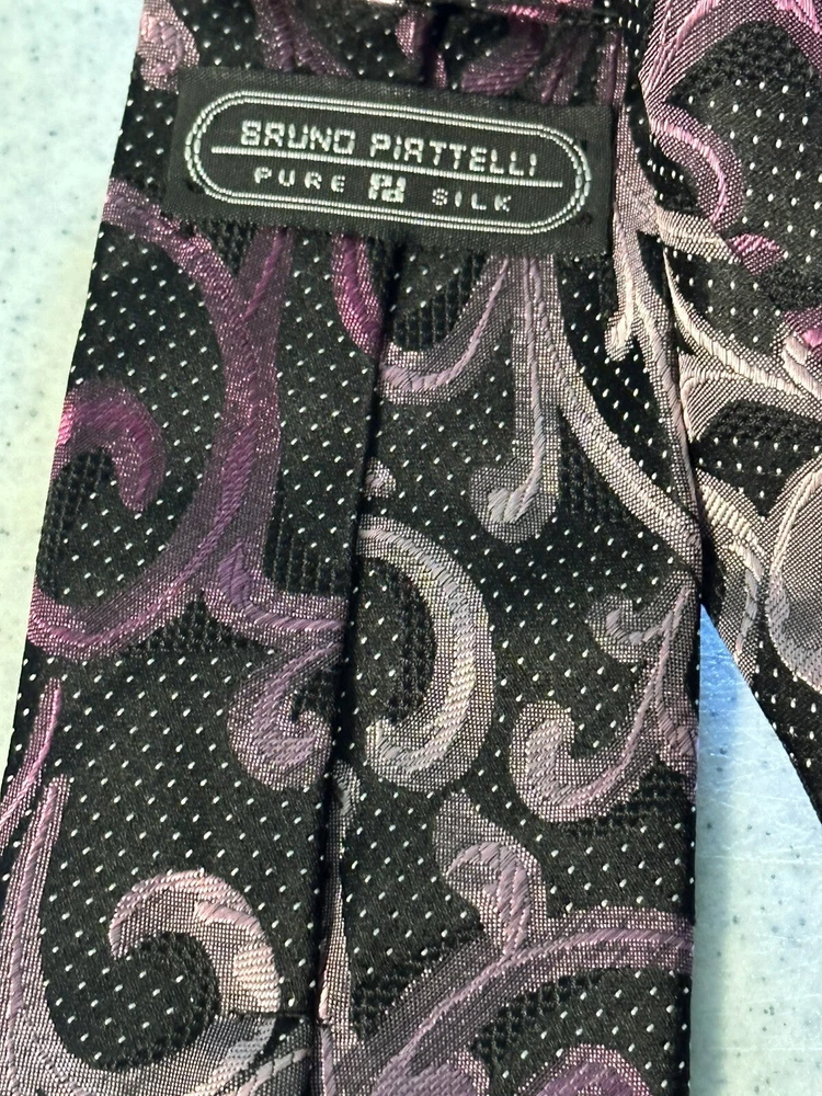Bruno Piattelli Purple Paisley Ombre Necktie Silk Tie Magenta Black White Polka