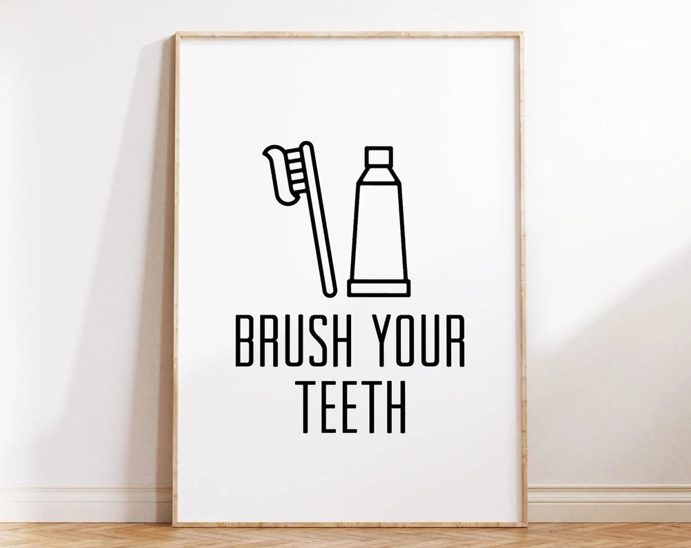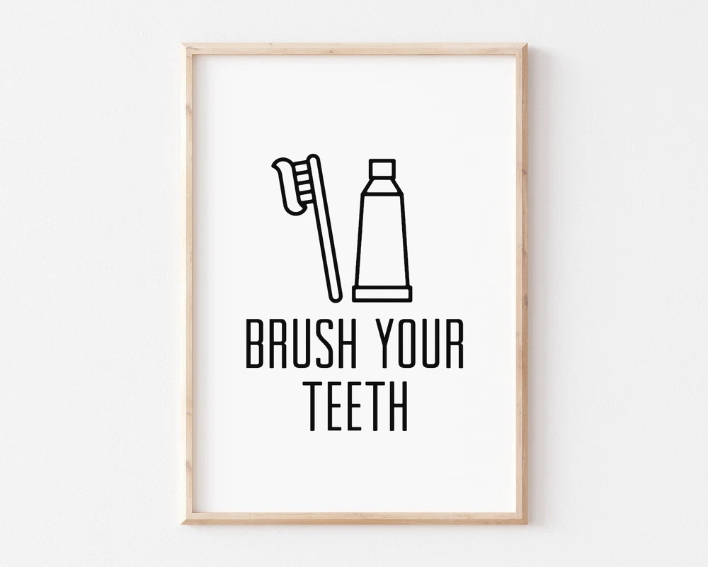 Brush Your Teeth Poster Bathroom Rules Wall Art Print For Kids Bathroom Printable Wall Print Material: Premium luster photo paper Print type: Inkjet printing One side printed + The finish provides the highest possible resolution and color saturation + Lasts up to 200 years in color and 400 years in black-and-white + Printed on high-quality resin-coated photo base paper medium + Posters can be hung with double-sided tape, tacks, or framed + Hand washing with a gentle cry cloth is recommended for extended durability I will hand select the best choice of paper for your chosen design to ensure top quality results for a beautiful, bright and luxurious print. All prints are sealed in cellophane slips for protection during transportation, and are shipped in a protective cardboard envelope.