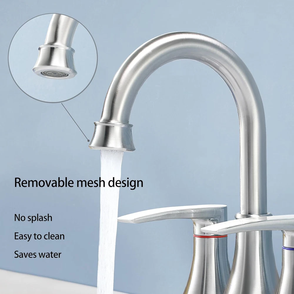 Menu Other Items Feedbacks About Us Contact Us Add To Favorites Brushed Nickel Bathroom Faucet, 2-Handle Lead-Free 360° Swivel High-Arc Spout 4 Inch Centerset Bath Lavatory Vanity Sink Faucets Set for Bathroom Sinks with Pop-Up Drain & Water Hoses Pop-up Drain & Water Inlet Hoses are INCLUDED in package. Dimensions: Overall Height: 8.26'';Spout Height: 5.51'',Spout Reach:4.72'' Exraordinary Quality: Lead-free material. Drip-Free ceramic disc cartridge with 500,000 times cycle testing ensures durable performance in daily life. Humanized Features: Brushed Nickel Finish. 360° swivel high arc spout makes your cleaning tasks much easier. 2 handles design for controlling water flow and temperature precisely. CUSTOMER SUPPORT : We stand behind our product and offer exceptional customer support. If you encounter any issues, Valisy's excellent customer support is always ready to assist you,ensuring your complete satisfaction. Product Description Elevating your bathroom’s look with sleek detailed design, VALISY Two Handles Brushed Nickel Bathroom Sink Faucet provides your bathroom timeless fashion with premium quality, resisting rusting,tarnishing,dripping or leaking. Reliability. VALISY Two Handle Lavatory Sink Faucet 360° swivel high arc spout makes your cleaning tasks much easier. Drip-Free Ceramic Cartridge,Valve: Ceramic Disc Cartridge.Ensure water stream comes out smoothly without dripping and leaking. Durable Premium Brushed Nickel Finish. Handle material: Stainless Steel.Resist rust and Easy to clean without tarnishing,corroding,or flaking off. SIZE Overall Height:8.26'' Spout Height: 5.19'' Spout Reach: 4.84' What will you get from a package? A Bathroom Faucet A Pop-up Drain 2 Water Hoses Moungting Accessories Feature Water Mode: Stream Water Feature: Mixed Hot and Cold Water Pressures: Minimum 0.5 bar, 1.0 bar recommended Durability Durable quality for use. Each VALISY faucet is protected by parts . Item Specification Style Classic Spout Height 5.51 Inches Spout Reach 4.72 Inches Material Type Stainless Steel, Brass Warranty Type limited Is Electric No Number Of Handles 2 Finish Types Brushed Number of Pieces 1 Material Stainless Steel, Brass Model Number VABM80008L Installation Method Centerset Model Name VABM80008L Finish Type Brushed Included Components Pop-up Drain, Water Inlet Hoses Spout Design High Arch Gooseneck Number of Handles 2 Special Features Lead Free Special Feature Lead Free Mount Type Deck Mount Mounting Type Deck Mount Color Brushed Nickel Handle Material Stainless Steel Handle Lever Placement Center Recommended Uses For Product Bathroom Handle Type Lever Dimensions Shipping Returns Additional Info Product Dimensions: 10.28 inches x 12.76 inches x 2.95 inches. Weight: 2.18 lb Fast shipping is very important for us. Our standard shipping service is FREE. Your order will be shipped within 1-3 business days upon full payment received. Most items are delivered within 3-5 business days, however, please allow 3-10 business days. We are shipping only to USA. We only ship to the confirmed Paypal address. We reserve the right to cancel any order for any reason at any time. We are not responsible for undeliverable addresses. We offer a 30 day return policy from checkout winning date. Your satisfaction is guaranteed! If for any reason you are unhappy with your item, just return it within 30 days for a full refund, minus shipping cost. Please contact us prior to initiating a return so that we can issue you a refund authorization. Items defective upon receipt must be packaged in their retail packaging as if new and returned with a detailed description of the problem. Return shipping fees are not refundable. We reserve the right to decline any returns if the above guidelines are not followed. All of our items, unless otherwise stated, will only run on 120 volts. Please check to make sure your country complies with these specifications. If you have a problem or question regarding your transaction please contact us before leaving any type of feedback. We will work with you to resolve any problem you may have.