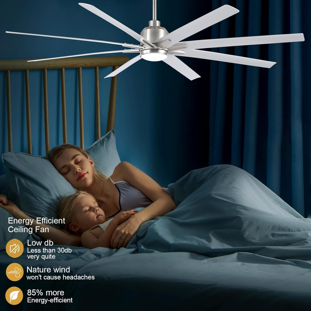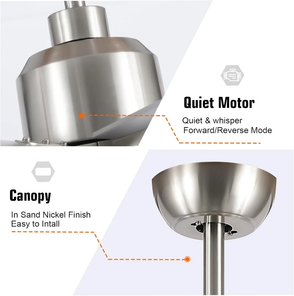 This ceiling fan is a game-changer! Super quiet with its DC motor and the remote makes adjusting speed and lights a breeze. The brushed nickel finish looks sleek, and the reversible blades are a nice touch. Perfect for large rooms—super strong airflow without being loud. Installation was straightforward, and it adds a modern industrial vibe to any space. Definitely worth it!