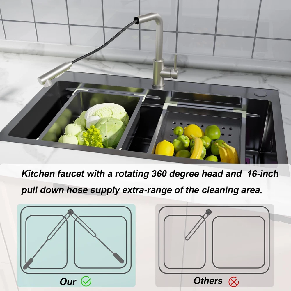 Store New Arrivals Add to Favorite View Feedback Contact Brushed Nickel Kitchen Faucet with Pull down Sprayer - Modern Single Handle Stainless Steel Faucet with 10" Deck Plate, 360° Swivel and Pull Out Sprayer - Perfect for American Kitchen Description Item model number FCG15049NS Style Modern Spout Height 11 Inches Hole Count 3 Spout Reach 15.75 Inches Country of Origin China Warranty Type limited Hose Length 15.75 Inches Batteries Included? No Handle Location Center Number of Pieces 1 Batteries Required? No Finish Stainless Steel Product Dimensions 10 x 4 x 2 inches Material Stainless Steel Installation Type mini_spread, single_hole_deck_mount, Single Hole Or Three Holes Model Name Brushed Nickel Kitchen Faucet with Pull Down Sprayer Finish Type Stainless Steel Included Components Deck Plate Spout Design High Arch Gooseneck Number of Handles 1 Item Weight 4 pounds Is Electric No Special Features 360 Swivel Special Feature 360 Swivel Valve Type Disc Valve Part Number FHW15049THNS Mounting Type Deck Mount Color Brushed Nickel Handle Type Lever Handle Material Stainless Steel Recommended Uses For Product Kitchen 「Health NOT TO Be Ignored」 : Lead-free construction creates natural and hygienic stainless steel kitchen faucets to ensure your water is always clean! This kitchen faucet with pull down sprayer is made of 304 stainless steel and food-grade PEX inner, eco-friendly and durable. Upgrade your kitchen with this high-quality kitchen faucet that is perfect for any kitchen decor. 「Multi-Function Sprayer for Pull Down Kitchen Faucet」 : ARRISEA kitchen faucet comes with a three-function water sprayer. Stream modthreee for daily cleaning and tasks. Spray mode for wide-range rinsing, increasing efficiency by 30%. Pause mode for convenience. You can easily toggle between modes to suit your needs. 「Easy to install」 : The pull-down kitchen faucet comes with most accessories pre-installed for easy installation. Simply use an adjustable wrench to connect the supply line valve. 「Application」: This versatile kitchen faucet can be installed in the RV, kitchen, and bar to effectively clean surfaces. It's also great for washstands for convenient face and hair washing. 「A Perfect Sink Fit Kitchen Faucet」: The brushed nickel kitchen faucet is 12” in height, fitting underneath 99% of kitchen cabinets. It comes with a Deck Plate for 1 hole or 3 holes installations. The high-arc 360° rotatable sprayer with a 30'' nylon hose provides a wide range of washing access. The multi-layer plating brushed nickel finish keeps it free from fingerprints and rust. Product Description 1 KITCHEN FAUCET 2 BAR FAUCET 3 LAUNDRY FAUCET 4 OUT FAUCET Different Kitchen Faucets Add to Cart Add to Cart Add to Cart Customer Reviews 4.1 out of 5 stars 13 3.8 out of 5 stars 6 4.6 out of 5 stars 16 2.7 out of 5 stars 4 Price $25.99 $ 25 . 99 $98.28 $ 98 . 28 — $35.99 $ 35 . 99 Price $59.99 $108.99 $47.99 $55.99 Finish Brushed Nickel Brushed Nickel Brushed Nickel Matte Black Flow Mode Stream/Spray Stream/Spray/Pause Stream/Spray/Pause Stream/Spray/Pause Required Holes 1 or 3 Holes 1 or 3 Holes 1 or 3 Holes 1 or 3 Holes Spout Swivel 360 Swivel 360 Swivel 360 Swivel 360 Swivel Style Morden Morden Morden Morden Features 90° Angle Touchless High Arc High Arc ABOUT US We offer the best prices around on high quality products. Our E-store includes media such as books, movies, music and games while offering electronics, toys, sporting apparel, clothing, tools, general home, garden items and more. SHIPPING We are always working hard to ensure your package arrives as soon as possible. Please understand that some factors like weather, high postal traffic, and the performance of shipping companies are outside of our control. We offer free shipping to the lower 48 states and ship within 2 business days of payment, usually sooner. We do not accept P.O. Boxes. Please provide a physical address. For shipping outside of the continental USA, we only use eBay's Global Shipping Program.The item is shipped to KY and then sent to the rest of the world. International customers are responsible for all duties and taxes. Continue to check out in order to calculate costs for shipping the item to your country. Messages regarding eBay's Global Shipping Program MUST be directed at eBay EXCLUSIVELY. RETURNS We offer a 30-Day Return Policy on items which you are not completely satisfied with. You have the option for a full-refund or an exchange of the item. No returns are available on items shipped outside of the USA. PAYMENT We accept PayPal. CONTACT US This page content is yet to come Please ad us to your favorite seller and visit again later Thank You CUSTOMER SATISFACTION We try our very best to make sure every customer is completely satisfied. If there's a problem, message us! We're happy to help. WE ACCEPT Copyright © 2021 AutoDS. | All Rights Reserved