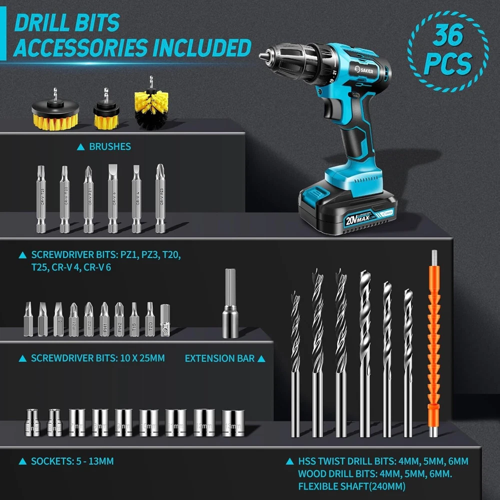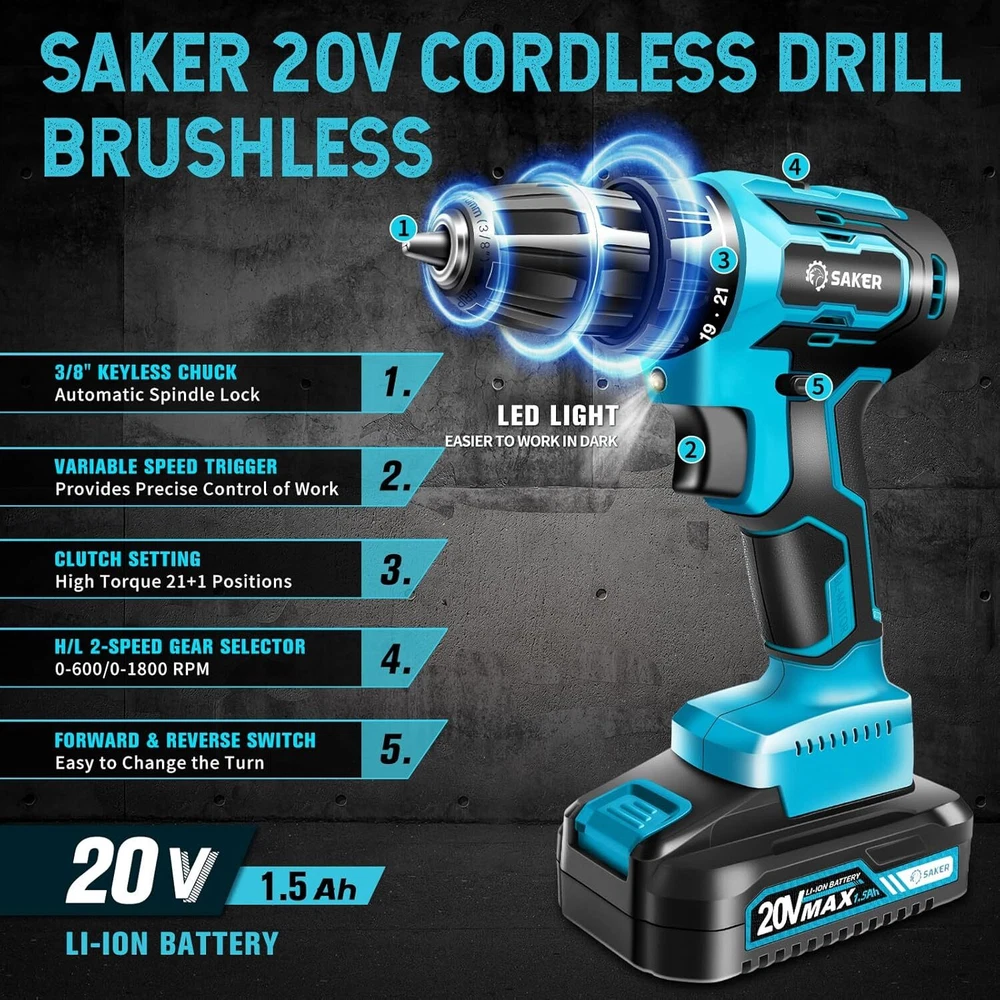 Product Description Cordless Drill Set, Brushless 20V Electric Drill with Drill Bits, 3/8-Inch Keyless Chuck, 2 Variable Speeds, 430 In-lbs Torque Battery Power Screwdriver Driver for Plastic, Wood, Metal, Screws 【GOOD ITEM】 20v drill sets can be given to your friends or families on the occasions such as Christmas, Valentine's Day, Father's Day, Mother's Day, Thanksgiving Day, birthdays, housewarmings, graduations, wedding registries, and anniversaries, providing practicality and versatility for DIY enthusiasts and homeowners. 【CUSTOMER SERVICE】 is dedicated to providing exceptional support and ensuring customer satisfaction. Please don't hesitate to contact us if you have any questions or problems with electric cordless screwdriver rechargeable. 【21+1 TORQUE SETTING & FORWARD/REVERSE SWITCH】 power drill drivers deliver a maximum torque of 430 in-lbs. With 21+1 torque settings and a forward/reverse switch, this cordless drills offer versatile functionality, including wood and plastic drilling (not suitable for masonry and concrete), screw tightening, hole punching, and screw removal. These features provide exceptional flexibility and ease of use, making them ideal for various DIY tasks and craft projects. 【ADJUSTABLE SPEED & 3/8-INCH KEYLESS CHUCK】 electric drills boast a robust brushless motor, delivering exceptional driving force. The 2 adjustable speed settings (0-600 & 0-1,800 RPM) enable effortless speed selection for various tasks. Equipped with a 3/8-Inch Keyless Metal Chuck, our power drill set ensures effortless bit changes, while providing versatility, durability, superior gripping power, precise drilling control, and efficient time-saving capabilities. 【DURABLE, LIGHTWEIGHT & COMPACT】Crafted from premium materials, power drill cordless ensures exceptional durability in long-term and challenging work conditions. Its lightweight design allows for effortless carrying and operation. The rubber-covered handle offers a comfortable ergonomic grip, enabling easy one-handed operation. Suitable for a diverse range of users, including DIY enthusiasts, professional contractors, hobbyists, craftsmen, maintenance personnel, and homeowners. About Us We are a reputable seller with many years of experience selling on eBay. Our goal is to provide high-quality products and excellent customer service. Shipping Items will be shipped within 1-3 business days when we received payment. (Orders are not processed on weekends & holidays) Tracking information will be sent once item is shipped. Delivery time depends on destination and other factors Item is shipped to ebay address. Leaving correct address can minimize delay. For international shipping and shipping to Guam, Hawaii and Alaska, Please contact us before placing the order. International buyers please note: Import duties, taxes and charges are not included in the item price or shipping charges. These charges are buyer’s responsibility. We will try our best to reduce the risk of the custom duties. Local pick-up is unavailable at the moment. Contact Us We reply any email messages within 1 business / working days(off-duty at weekend). If you do not get a response from us, then please check your junk or spam mailbox. Our Business hours: Mon-Fri 9:00-18:00, UTC/GMT +8 hours. Please contact us either by clicking "contact seller" in the "purchase history" section or simply click "ask a question" at the bottom of this page. If you are unsatisfied with our item or service, please contact us before leaving any feedback. We are committed to resolve all issues in a friendly and satisfactory manner.