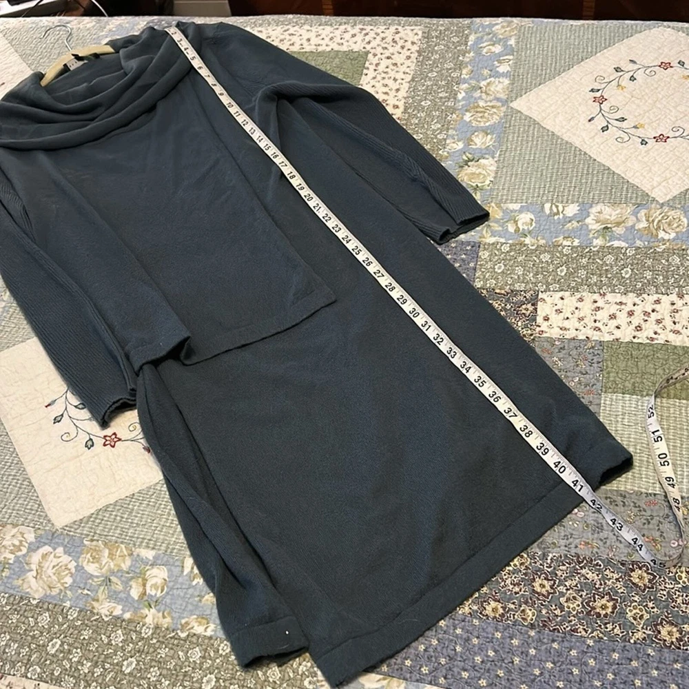 Bryn Walker Cotton Cashmere Cowl Asymmetric Sweater Tunic Deep Green XL