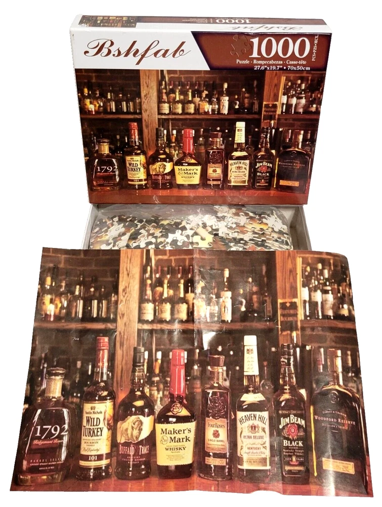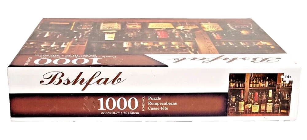 This Bshfab 1000 piece jigsaw puzzle features a variety of colorful whiskey and liquor bottles set in a bar scene. The puzzle is recommended for ages 14 and up and is made in China. As you piece together this puzzle, you'll be transported to a cozy bar filled with a range of whiskey bottles, perfect for any puzzle lover or whiskey enthusiast. So whether you're looking for a challenging puzzle to complete on a lazy Sunday afternoon or a unique and fun gift idea, this Bshfab puzzle is sure to delight. Doing puzzles has some hidden benefits . Excellent qualities : Cultivate concentration, patience, and temper your will Movement development : Train hand-eye coordination and precise small movements Spatial intelligence : Improve visual discrimination of colors and shapes Critical thinking ability : Understand the relationship between parts and the whole, and draw inferences from one example to explore the future Relaxes your mind : Relieve work pressure and release yourself Brain development : Enhance memory and may help prevent or slow brain degeneration We did not work the puzzle or count the pieces, but we verify the number count at your request. Each item we ship is carefully packaged to prevent any damage and is shipped immediately with tracking.