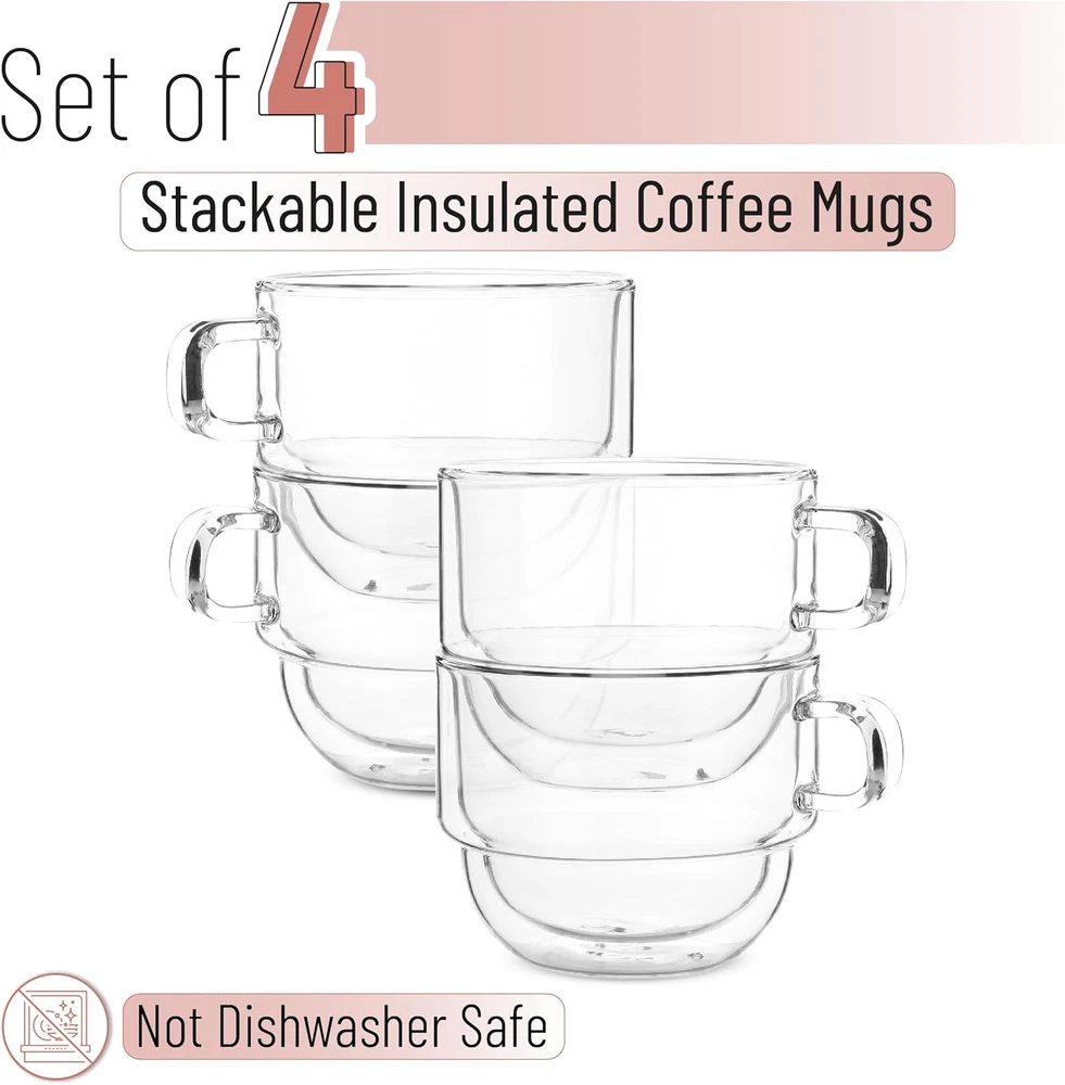 Btat- Stackable Insulated Coffee Mugs, 4 Pack, 12 Oz, Ideal for Hot and Cold Dri