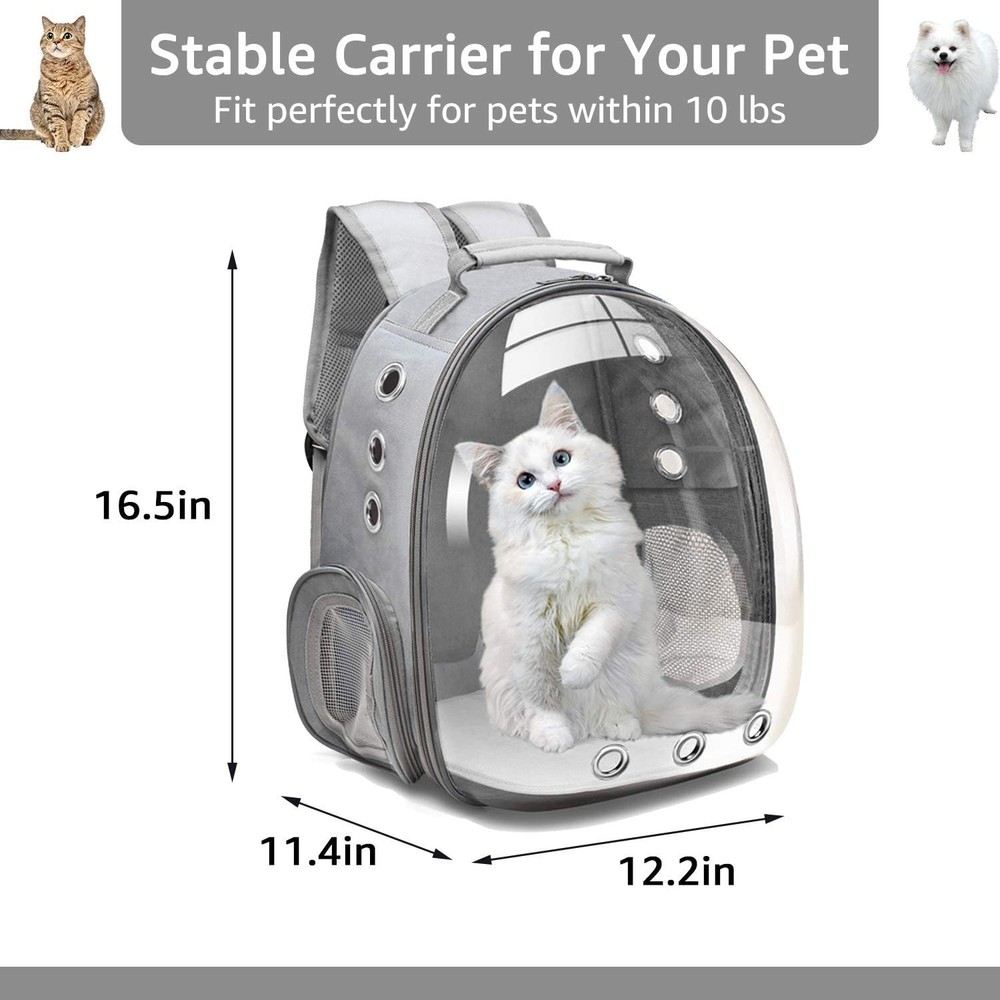 Give your pet a safe, comfortable, and stylish way to travel with this Space Capsule Pet Carrier Backpack in Grey. Designed for small to medium dogs and cats, this unique bubble-style carrier allows your pet to enjoy a wider view of the outside world while feeling secure and protected. The innovative space capsule appearance provides a cozy environment that helps reduce anxiety and keeps your pet calm during travel. Whether you're hiking, biking, walking, or heading out for a day trip, this carrier offers a hands-free solution that makes transporting your pet easy and convenient. Made from durable ABS material and high-quality Oxford cloth, the backpack features a breathable nine-hole ventilation system and air mesh panels to ensure excellent airflow and comfort. The scratch-resistant design adds durability for long-term use. The ergonomic shoulder straps are designed to absorb sweat and reduce pressure, providing maximum comfort even during extended wear. You can wear the carrier on your front or back, giving you flexibility for different activities and preferences. Perfect for travel, outdoor adventures, and everyday outings, this pet backpack is a practical and stylish choice for pet owners on the go. Color: Grey Suitable for: Small to medium dogs and cats Ideal for: Travel, hiking, biking, camping, walking, and outdoor activities