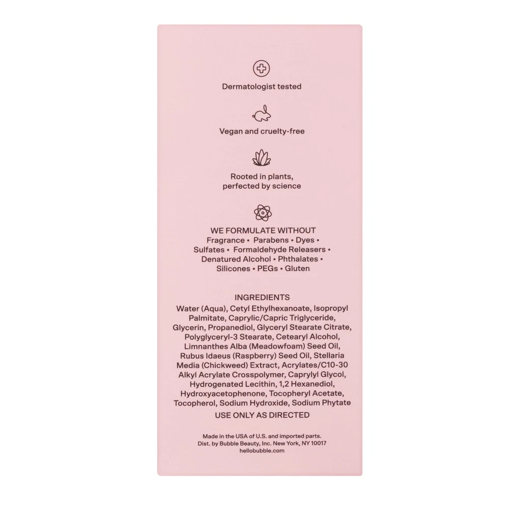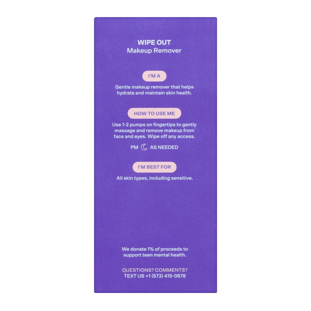 Makeup. If you use it, this is how you lose it. We love makeup. and we love it even more when it doesn't end up on your pillowcase. Our Bubble Skincare Wipe Out Makeup Remover Cleansing Milk is strong enough to remove your favorite mascara and gentle enough to apply directly onto your skin with just your fingertips. No harsh rubbing required. INSTRUCTIONS: Use 1-2 pumps on fingertips to gently massage and remove makeup from face and eyes. This Milk Cleanser is great to deep clean your face for any reason. Why you'll love it: Meadowfoam Seed Oil is a non-greasy oil that helps keep skin balanced by locking in hydration and promoting optimal moisture levels. Raspberry Seed Oil is a botanical oil that is rich in vitamins and antioxidants, and also helps replenish moisture levels in the skin. Chickweed Extract is a mineral-rich plant extract that is full of antioxidants that help soothe and calm skin. Fun Facts: For all skin types Free of denatured alcohols, parabens, artificial color & added fragrance materials Cruelty-free and vegan