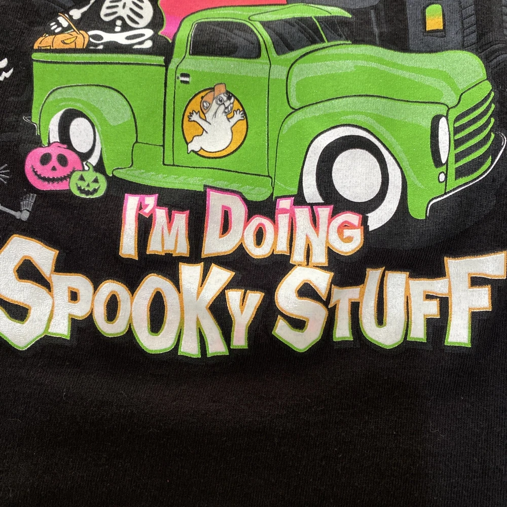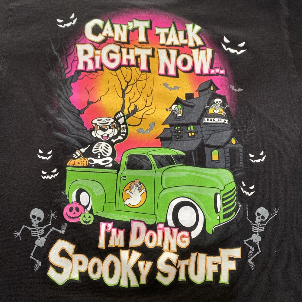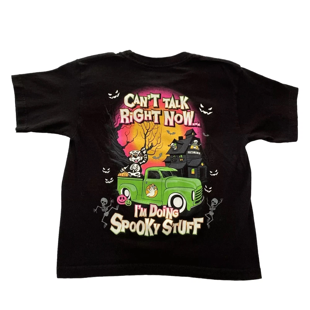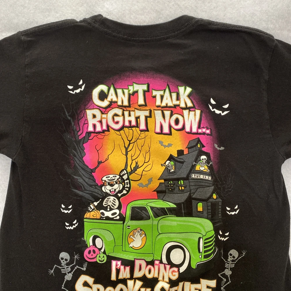 Buc-ee's Halloween Shirt Kids Youth XS Can't Talk Now Doing Spooky Stuff T-Shirt. In good, preowned condition. No stains or holes. Glows in the dark. Youth size XS. Measurements taken while lying flat: Armpit to armpit: 14.5" Sleeve length: 6" Total length: 17.5" Shipped from a smoke free home.