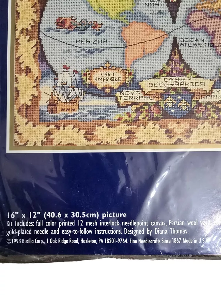 This Bucilla 4785 Needlepoint Kit features a beautiful Old World Map design, perfect for any craft lover. The kit includes everything you need to create a stunning 16" x 12" picture, including wool yarn, needle, canvas, and fabric/cloth. Artist Diana Thomas has created a unique and detailed design that showcases the theme of the map. This kit is a great addition to any needlecraft collection and is perfect for both beginners and experienced stitchers. Create a beautiful and timeless piece with this Bucilla Needlepoint Kit.