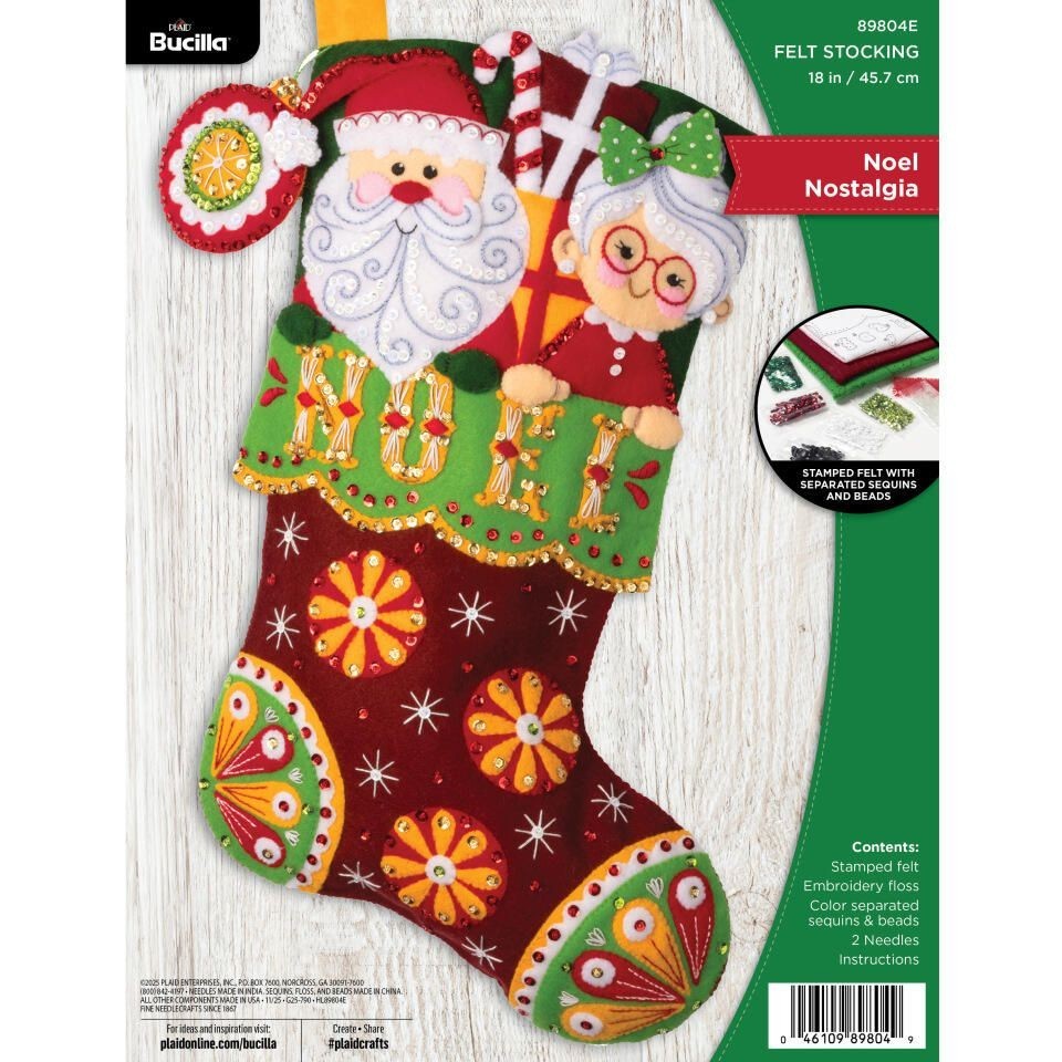 The USPS shipping rates will increase by 5.1% to 7.8% for Ground Advantage and Priority Mail effective Jan 18, 2026. Add 2 or more items to your shopping cart and shipping will combine and lower the shipping cost per item.. Bucilla Stocking Kit Noel Nostalgia Felt Stocking Kit Finished Size:18 inches Includes: Stamped Felt, Embroidery Floss, Color Seperated Sequins and Beads, 2 Needles and Instructions.