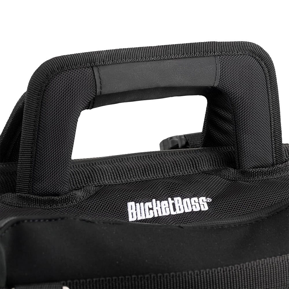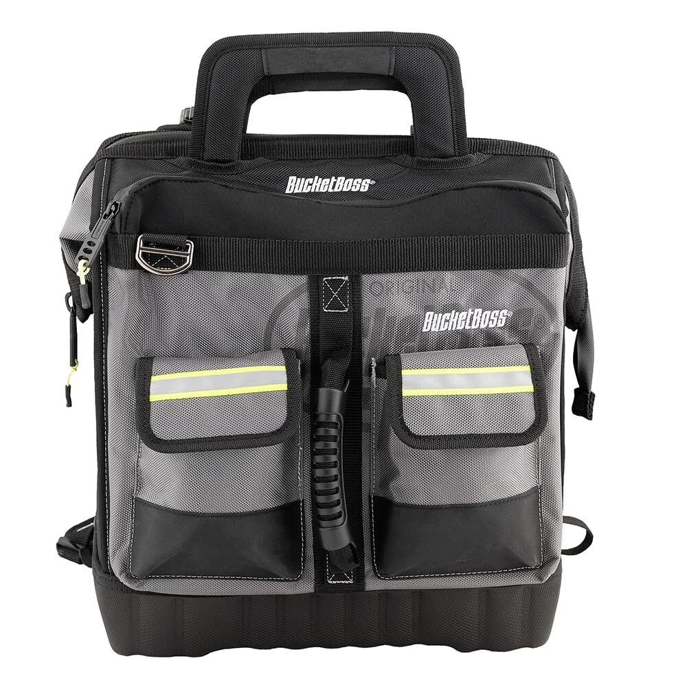 From the Bucket Boss Professional High-Visibility Series, the 14 in. High Visibility Professional Tool bag tool case has 23 total pockets and is built more like a case than a bag, hence the name. Equipped with 3M Scotchlite Reflective that meets ANSI and EN1150 Retro-Reflective worldwide standards for high-visibility and job site safety. Made for the professional, this tool bag is constructed with heavyweight 1680 2-ply poly fabric and boasts a molded, waterproof bottom to protect bag contents. This tool bag also features oversized StayPut handle grips that remain in an upright position, but also an innovative removable, adjustable strap system allowing the tool bag to be worn as a backpack, or tucked behind a cushioned back panel, or be removed altogether. D-Rings allow shoulder strap (not included) to be easily attached to the tool bag case. The front molded grip allows the tool bag to be repositioned easily while sitting upright, allowing the case to be used on a bench as a workstation. The zippered tech-pocket is lined with thick, flexible neoprene and holds up to a 13 inch laptop or tablet. Other features of this high visibility professional tool bag case include a waterproof zipper to keep its 28-liter capacity dry, and 23 total tool pockets - 19 interior pockets and 4 exterior pockets. 1680 heavy-duty poly fabric Molded, waterproof bottom and oversized StayPut handle grips Front laptop compartment fits 13 in. laptop and tablet, 14 internal pockets, 2 external HV Retro-Reflective meets EN1150 worldwide standard Removeable, adjustable straps and front handle allows handling as a work station