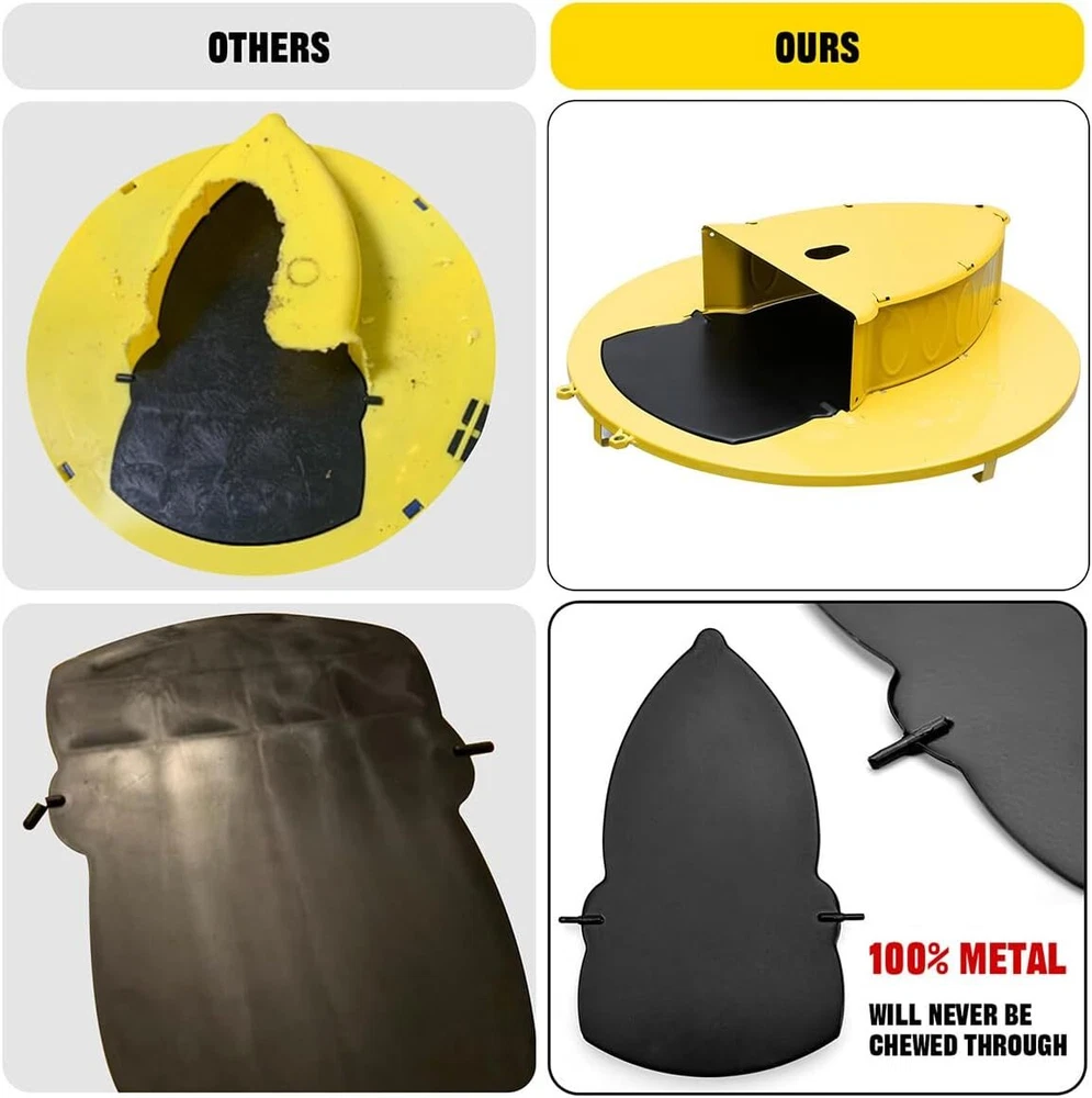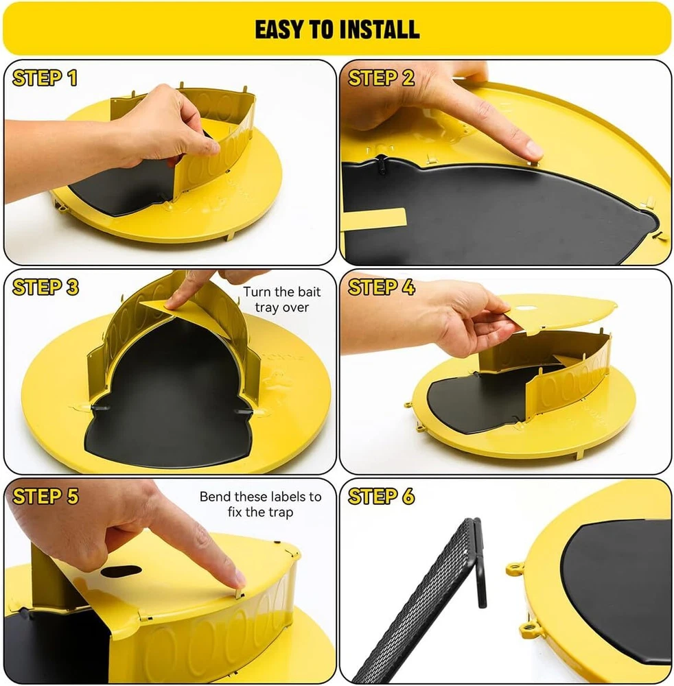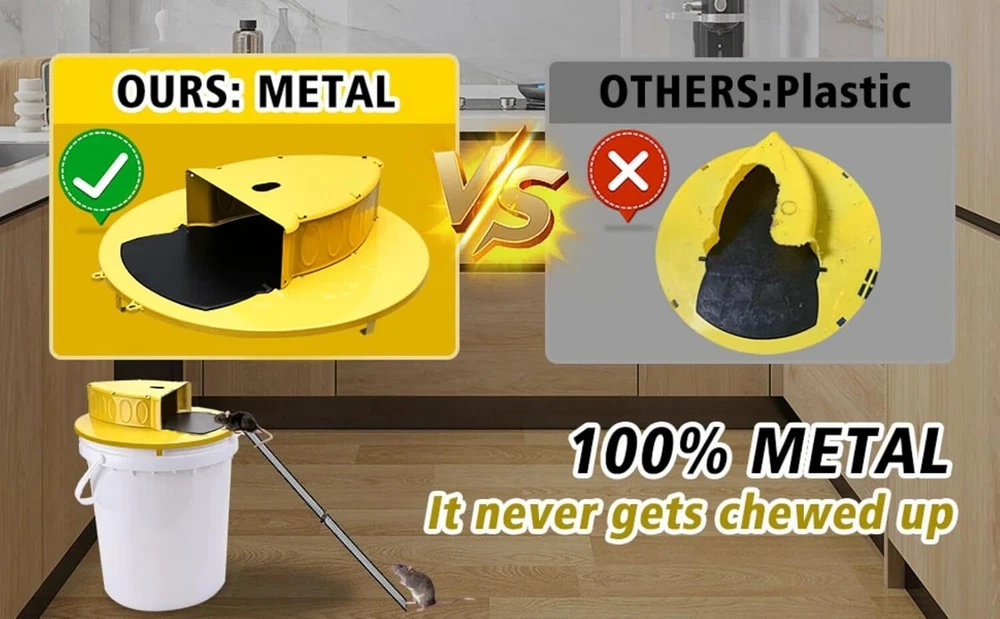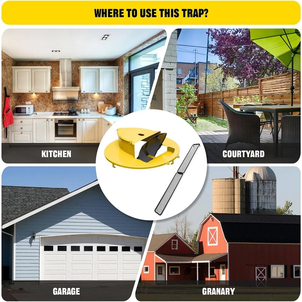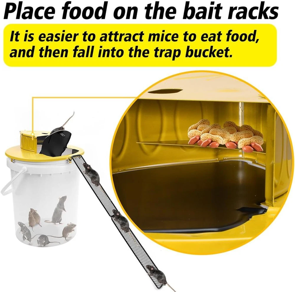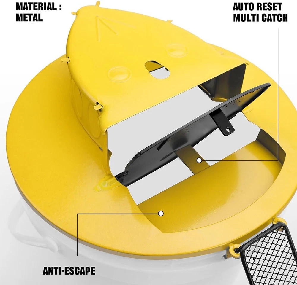 Bucket Lid Mouse Rat Trap, Reusable Humane Mouse Traps for Indoor Outdoor, Metal Material, Automatic Reset Mouse Trap, 5 Gallon Bucket Compatible Color Yellow and black Style Trap Door Style Material Metal Product Dimensions 12"L x 12"W x 1"H Number of Pieces 1 Is Electric No Target Species Mouse Unit Count 1.0 Count Humane Mouse Trap: The bucket lid mouse trap is a humane way to catch mice without causing harm. It features a smooth entrance that allows mice to enter the trap easily but prevents them from escaping Metal Material: The bucket lid mouse trap is made of high-quality metal material, making it durable and long-lasting. It is resistant to corrosion and can be used repeatedly for many years Bait Tray: The trap come with bait tray, allowing you to place bait securely inside the trap. The bait racks prevent the bait from being scattered or wasted, ensuring that the trap remains effective Multi Catch: The bucket lid mouse trap features a multi-catch design, allowing it to catch multiple mice at once. It is ideal for use in areas where there is a high infestation of mice, such as homes, restaurants, Chicken coop and warehouses 5 Gallon Bucket Compatible: The trap is compatible with 5-gallon buckets, making it convenient to use in various locations. It can be easily set up and placed in corners, under sinks, or behind furniture, where mice are most likely to hide
