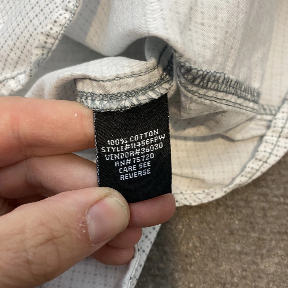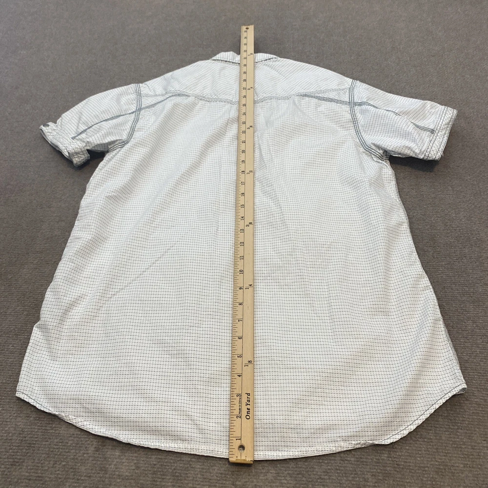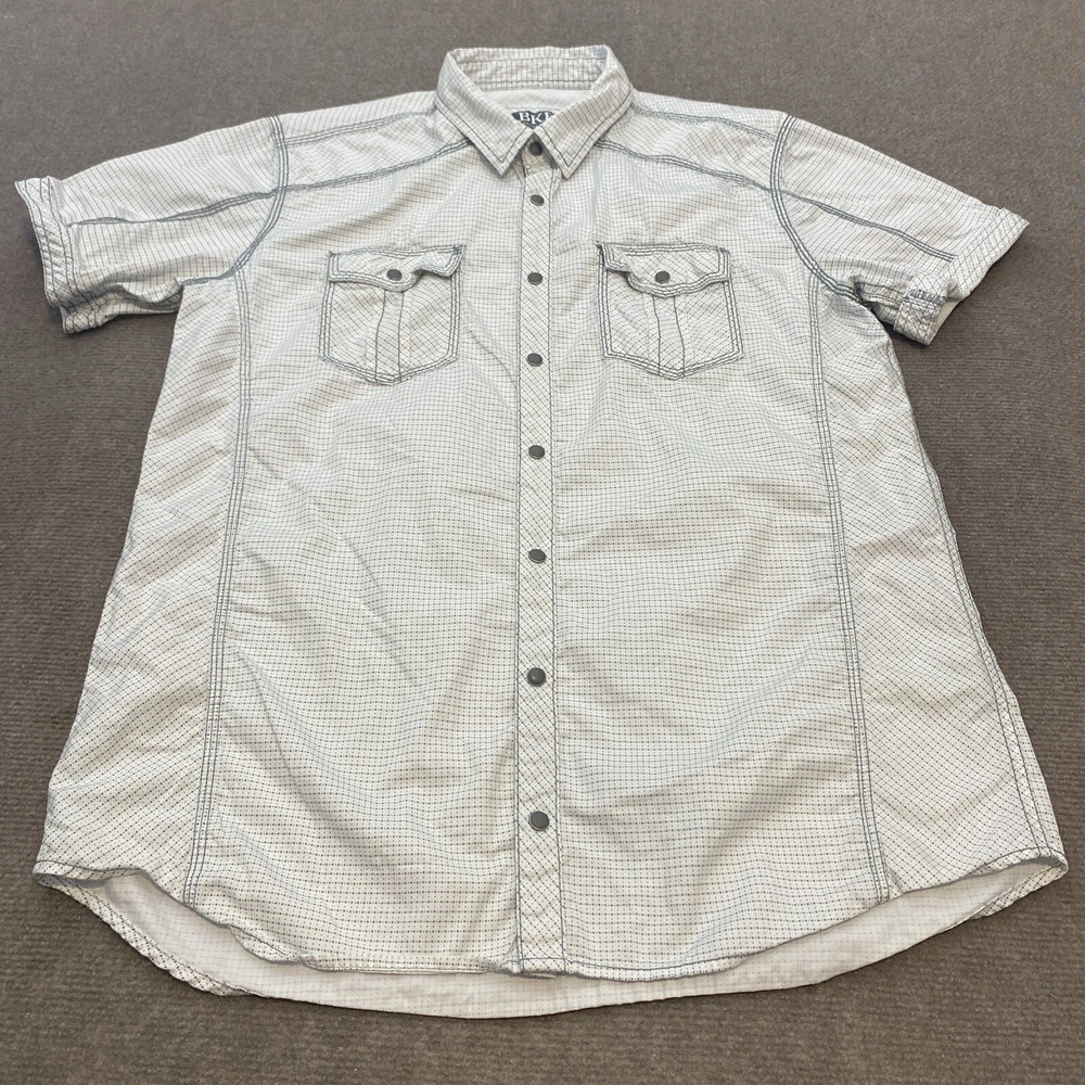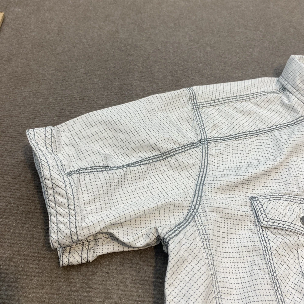 Fabric Type: Knit Color: Multicolor Occasion: Casual, Travel Fit: Classic Brand: Buckle Size: L Model: Pearl Snap Shirt Closure: Snap Vintage: No Material: Cotton Sleeve Length: Short Sleeve Department: Men Pattern: Polka Dot Product Line: BKE Buckle Collar Style: Point Country/Region of Manufacture: China Accents: Button Size Type: Regular Features: All Seasons, Stretch Character: BKE Neckline: Collared Theme: Western Type: Button-Up
