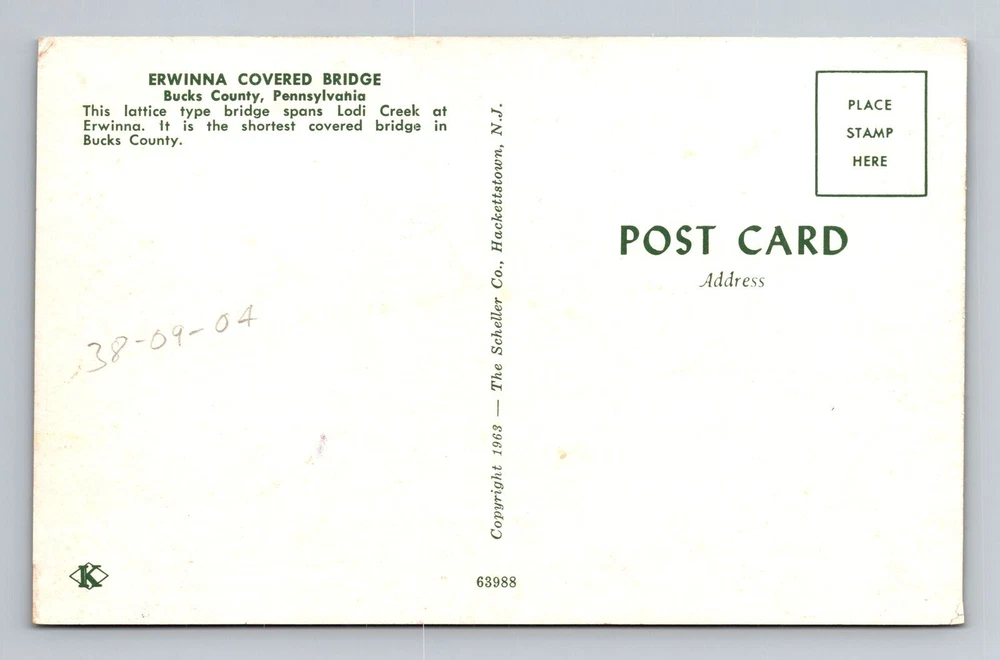 Bucks County PA-Pennsylvania, Erwinna Covered Bridge, Vintage Postcard