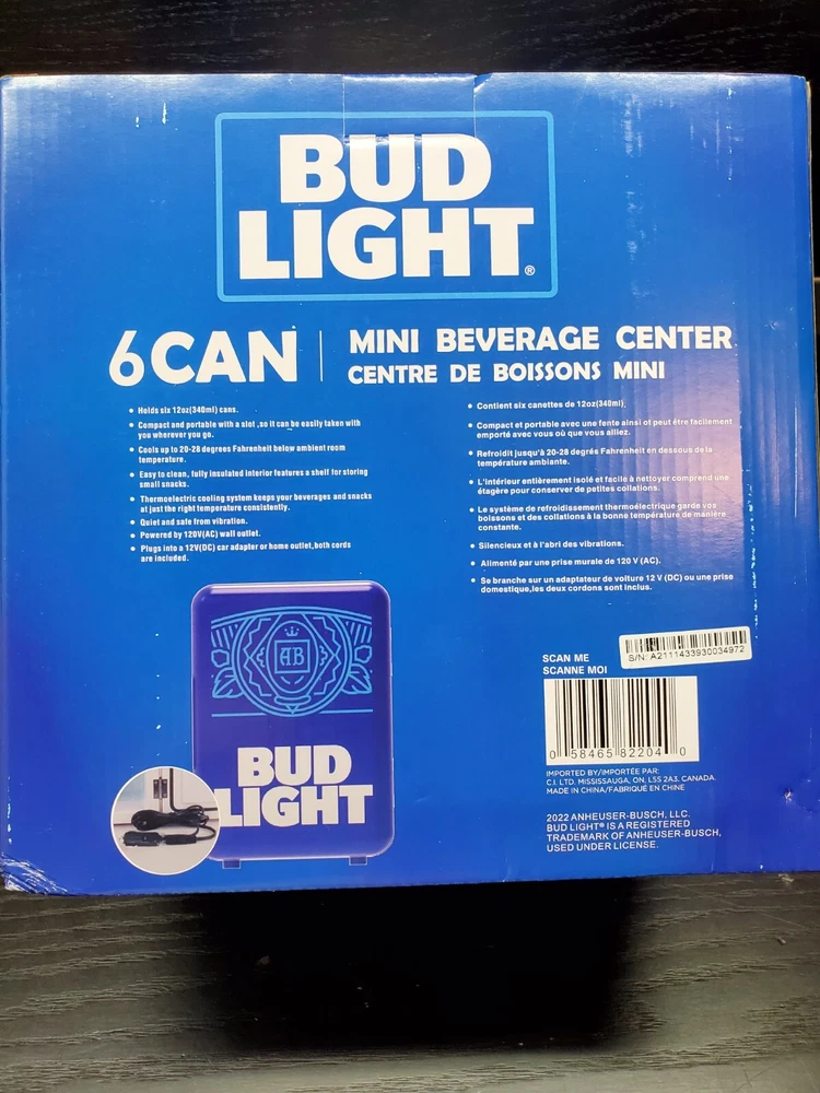 Bud Light Mini Portable Compact Personal Fridge Cooler New In Box