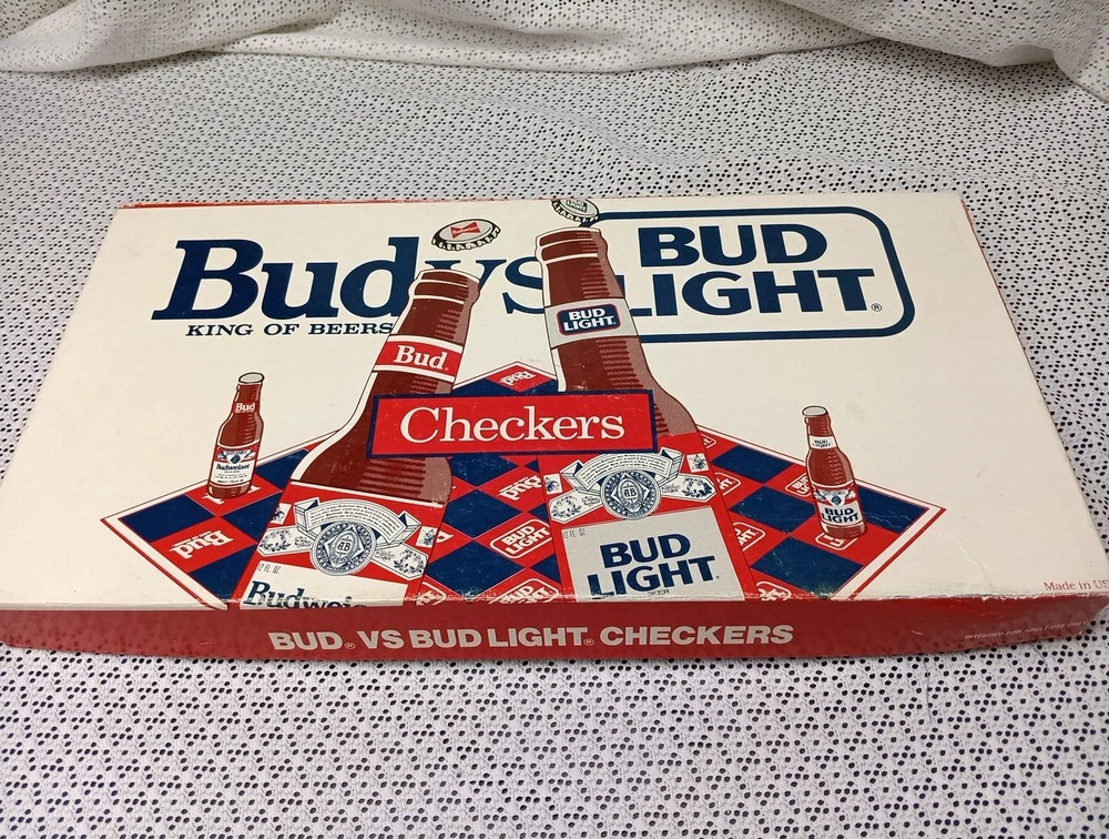 Bud vs Bud Light Checkers Vintage Board Game Budweiser King Of Beers USA. Good Labels, Box slightly worn, 10 Caps/Crowns