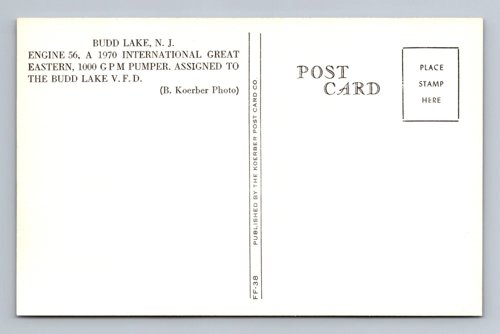 Budd Lake NJ-New Jersey, Intl. Great Eastern 1000 GPM Pumper Vintage Postcard
