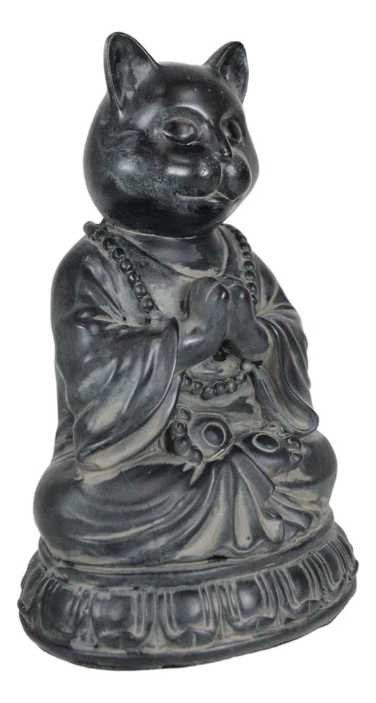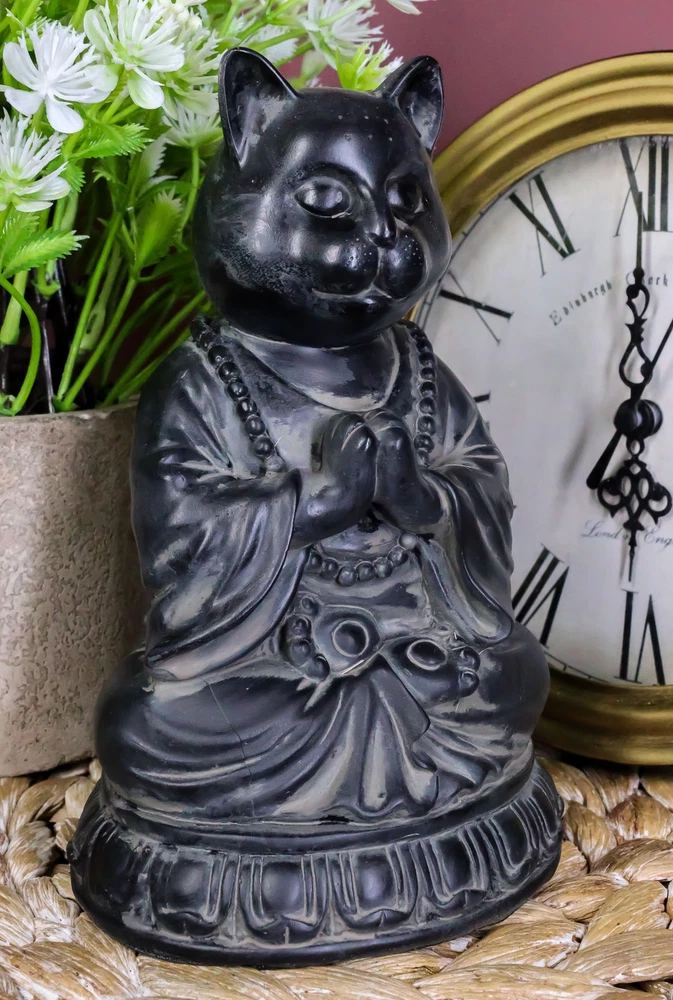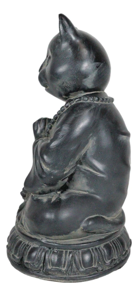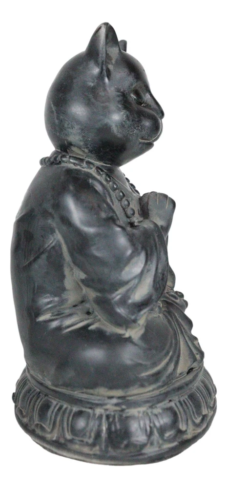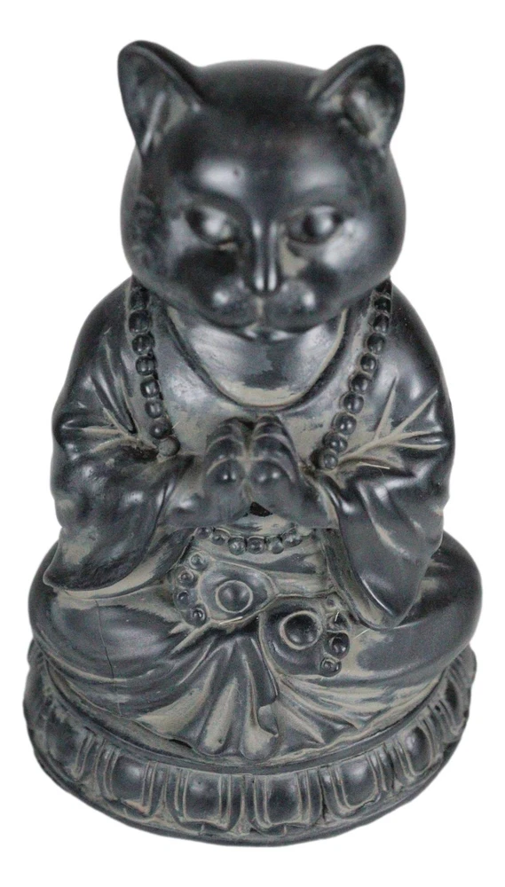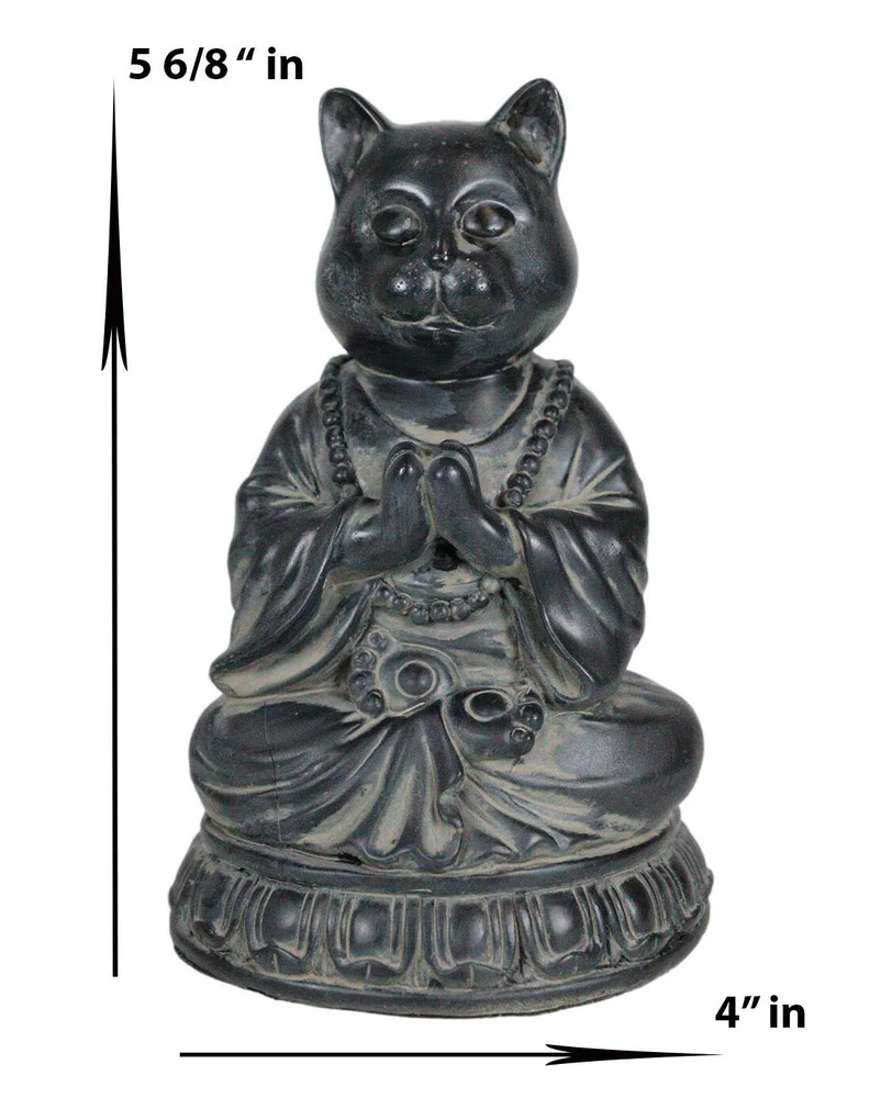 • This Zen Buddha Cat Meditating Statue stands 6" tall, 4.25" long and 3.5" deep approximately. • This Zen Buddha Cat Meditating Statue is made of designer composite resin, hand painted and polished • This content feline Buddhist is a kindred soul traveling the enlightened path. Keep in your home when you are in need of peace or keeping your life balanced. Sitting cross legged depicts the pose of inner peace and with the thumbs and fingers touching helps to create or enhance the flow of energy. • This is an Ebros Gift exclusive collection.