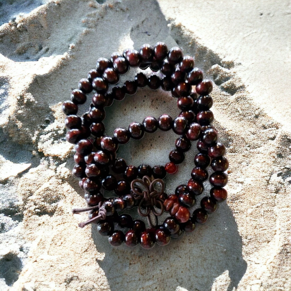 Buddhist Meditation Prayer Bead Mala Bracelet 108 Beads Natural Burgundy