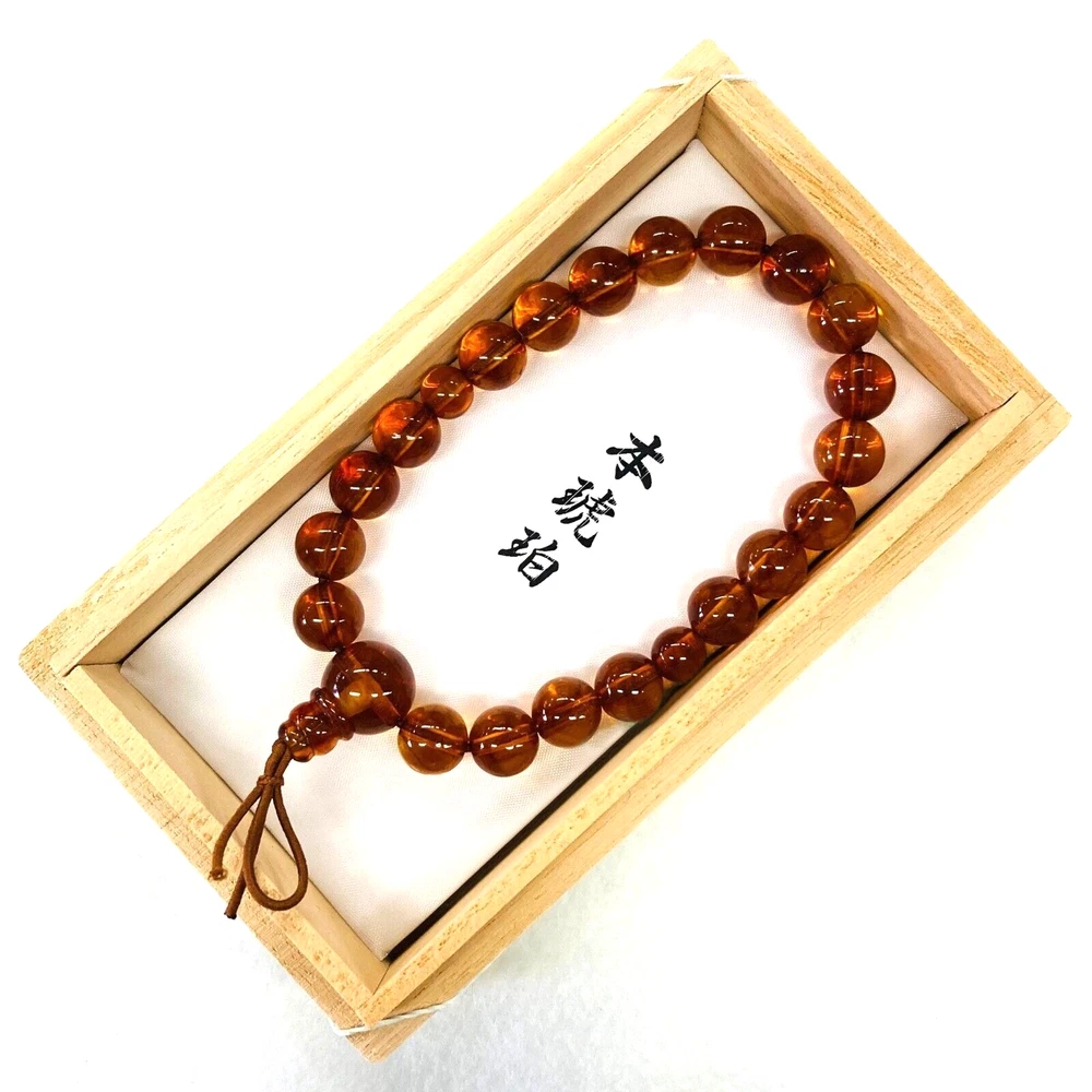 Description Thank you for viewing my listing. Condition : Unused This is a handmade prayer bead crafted by an artisan from Kyoto, Japan. Type: Buddhist prayer beads / Juzu Bracelet - 数珠 Material : Natural amber Circumference : 180mm Beads diameter : 9mm, 12mm Strings material : Silk elastic s trings [Accessories] Wooden box Shipping We ship from Japan. Ships from Japan Post. We ship by airmail with tracking number and insurance. If you live in a remote area, please pay additional shipping cost 25USD for us. If you are unsure whether your location qualifies as a remote area, please contact us before making a purchase. International Buyers - Please Note: Import duties, taxes, and charges are not included in the item price or shipping cost. These charges are the buyer's responsibility. Please check with your country's customs office to determine what these additional costs will be prior to bidding or buying. These charges are usually levied by the delivering carrier or when you collect the item. Please note that this is not to be confused with additional delivery charges. We do not list items below value and mark items as 'gifts' - US and international government regulations prohibit such actions. Thank you for your understanding.
