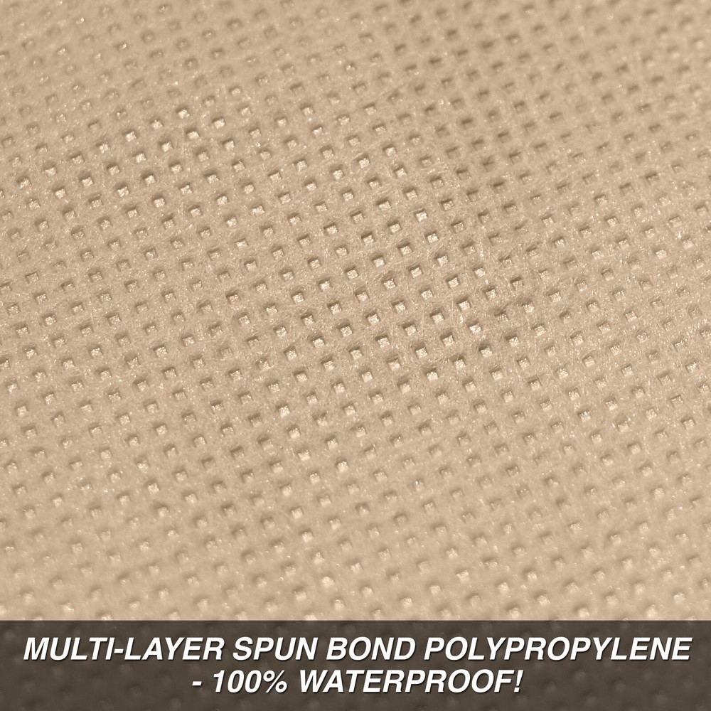 Our Budge Rain Barrier Car Cover Fits Buick Skylark 1961, Tan. The Budge Rain Barrier car cover offers easy to use, 100% waterproof indoor and outdoor protection. This vehicle cover is constructed from a 3 layer material consisting of an inside and outside layer of spun-bond polypropylene. The middle layer is made from a waterproof film. Unlike most waterproof car covers, the Budge Rain Barrier features micro-pore technology that allows condensation to escape as evaporated gas – giving your vehicle inside and outside protection. This cover is great for outdoor and indoor use. The soft, nonabrasive material will not harm the surface of your vehicle. This cover features a full elastic hem and built-in grommets. This cover is available in a tan color. Includes a storage bag and antenna patch. This Budge Rain Barrier Car Cover Fits Buick Skylark 1961