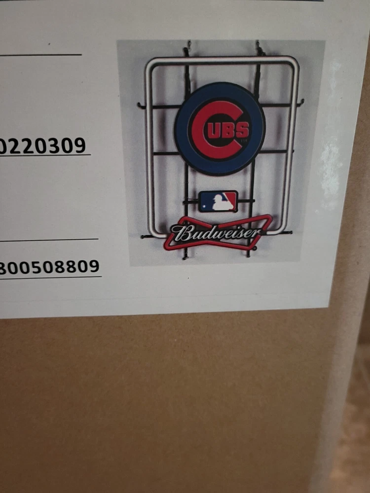 Brand new Budweiser beer & the Chicago Cubs led light up sign it is size 24" tall by 18" wide comes brand new in the original Box mint shape it has a on off switch on cord super cool looking will make a great addition to your game Room buy it now before it's gone.Please check my auctions I have more cubs neon's and Chicago Blackhawks & whitesox items