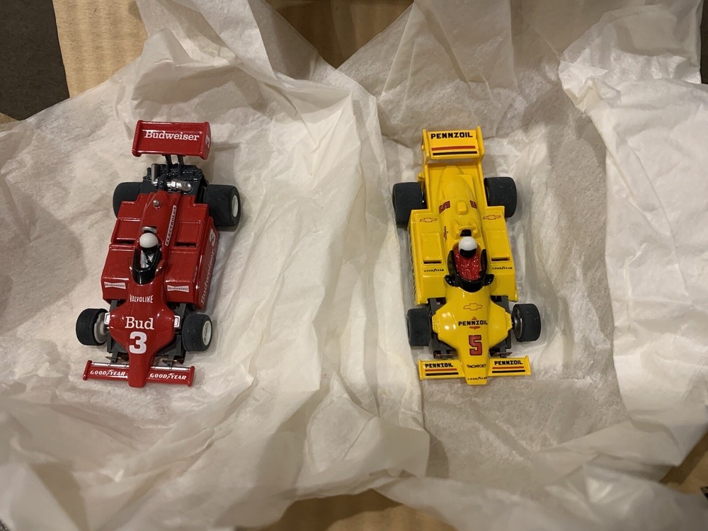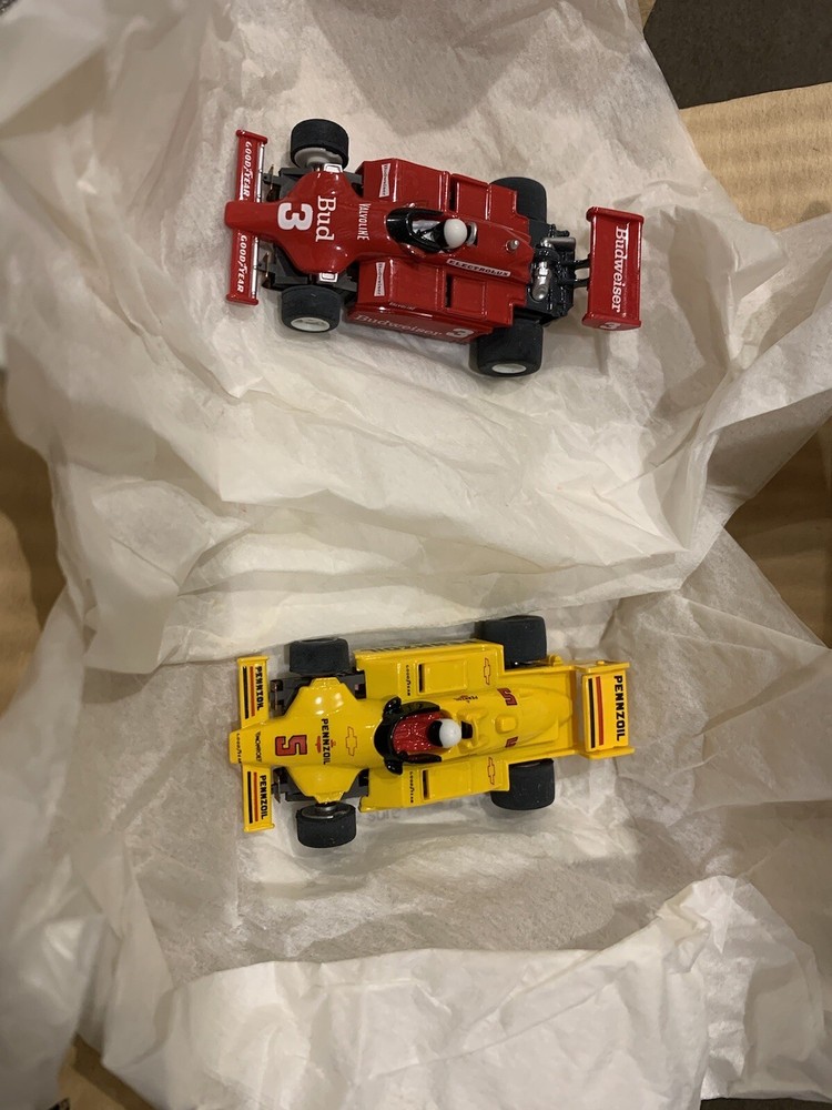This HO scale Tyco 440-X2 Indy car is a must-have for any slot car enthusiast. The car features a stunning Chaparral and Budweiser design that will surely catch the eye of anyone who sees it. With its high-quality construction and intricate detailing, this car is sure to provide hours of fun and excitement on any track. Whether you're a seasoned collector or just starting out, this Tyco slot car is the perfect addition to your collection. So don't miss out on the chance to own this amazing piece of slot car history. Order yours today and experience the thrill of the race! This is a must have rare collector’s set and true investment!