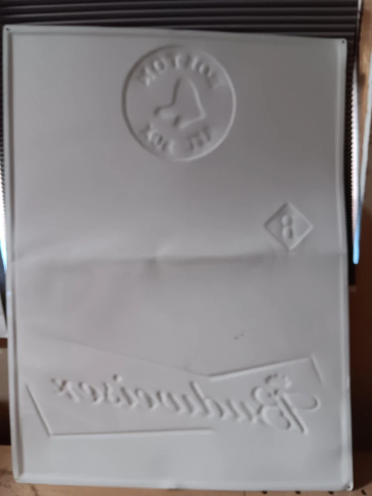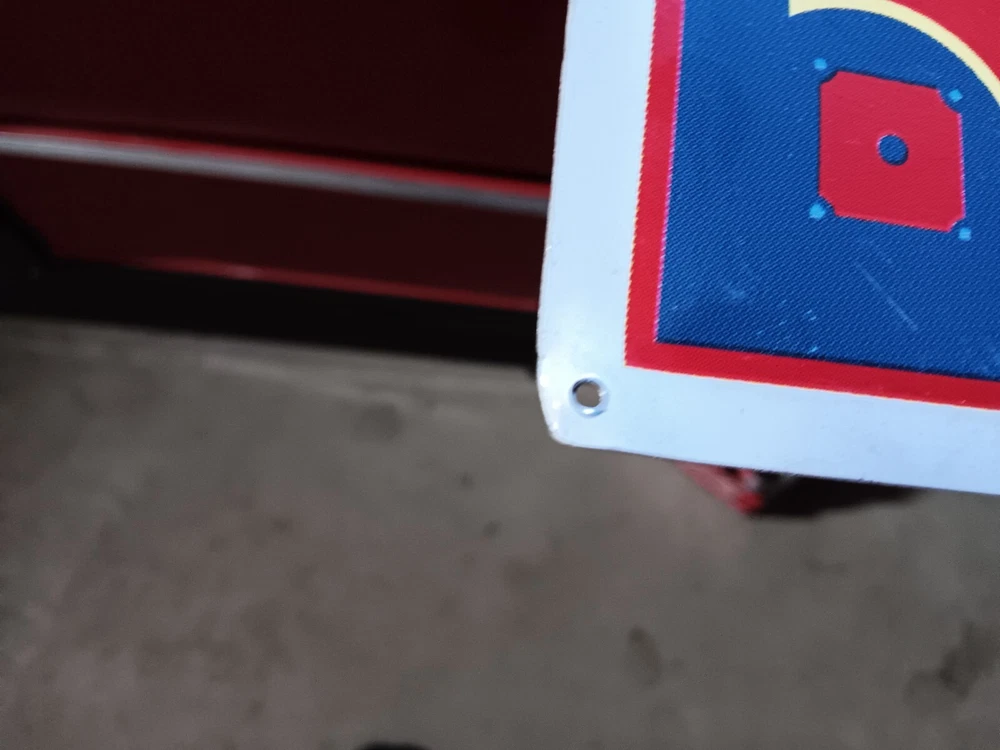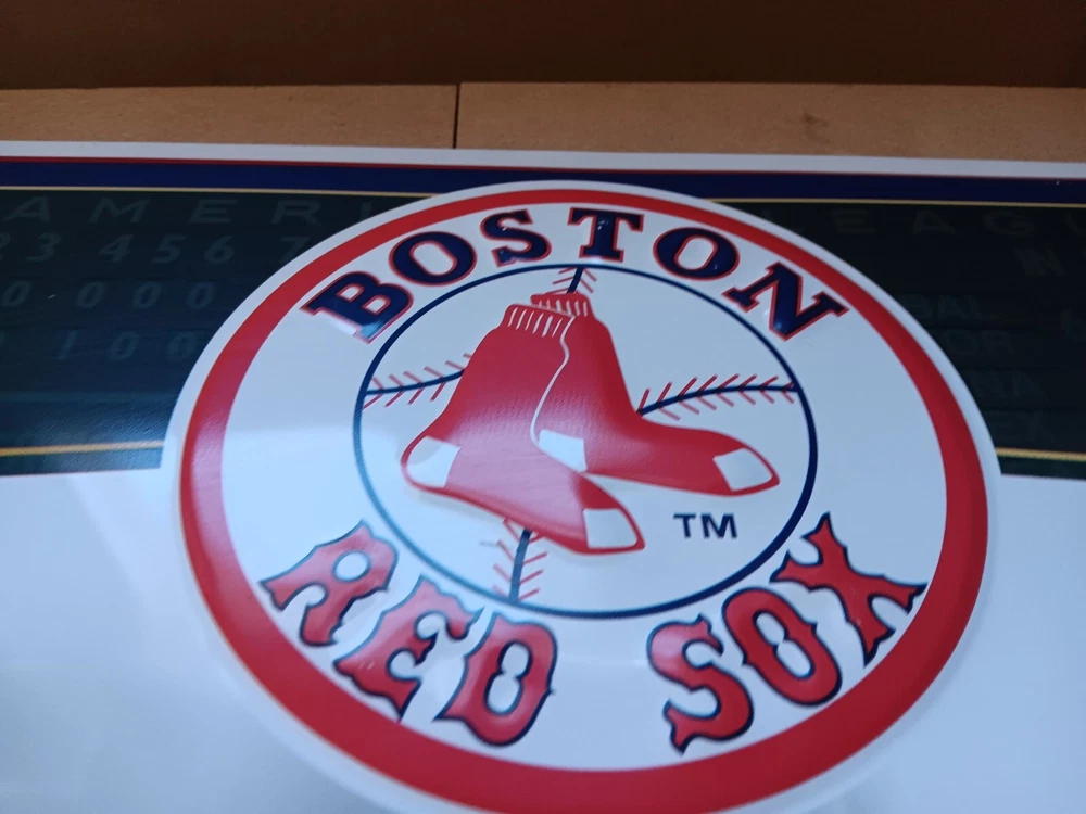 This Budweiser Metal Bar Sign is a must-have for any fan of the Boston Red Sox. Made in the United States, this sign features the iconic Budweiser logo and is perfect for collectors of breweriana. It is not in the greatest condition as it is pre-owned, so please look at all the pictures . It has a crease in the middle, but it's still a great piece to add to your sports or beer collection. It measures 28" x 21" and I believe it was mfg in 2005 hard to see on the bottom right corner.